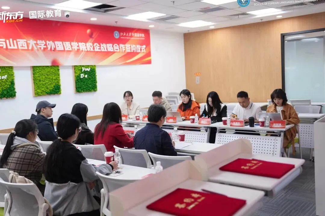 为扎实推进访企拓岗促就业专项行动,深化校企协同育人机制,拓宽我院学生实习实践渠道,助力学子将专业知识转化为职业能力,近日,山西大学外国语学院与太原新东方国际教育正式达成校企战略合作,共建学生实习实训基地,为我院学子搭建起从校园到职场的优质过渡平台。