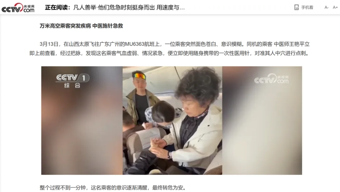 央媒点赞!万米高空一针救人——针灸传承人王艳平的“一分钟奇迹”