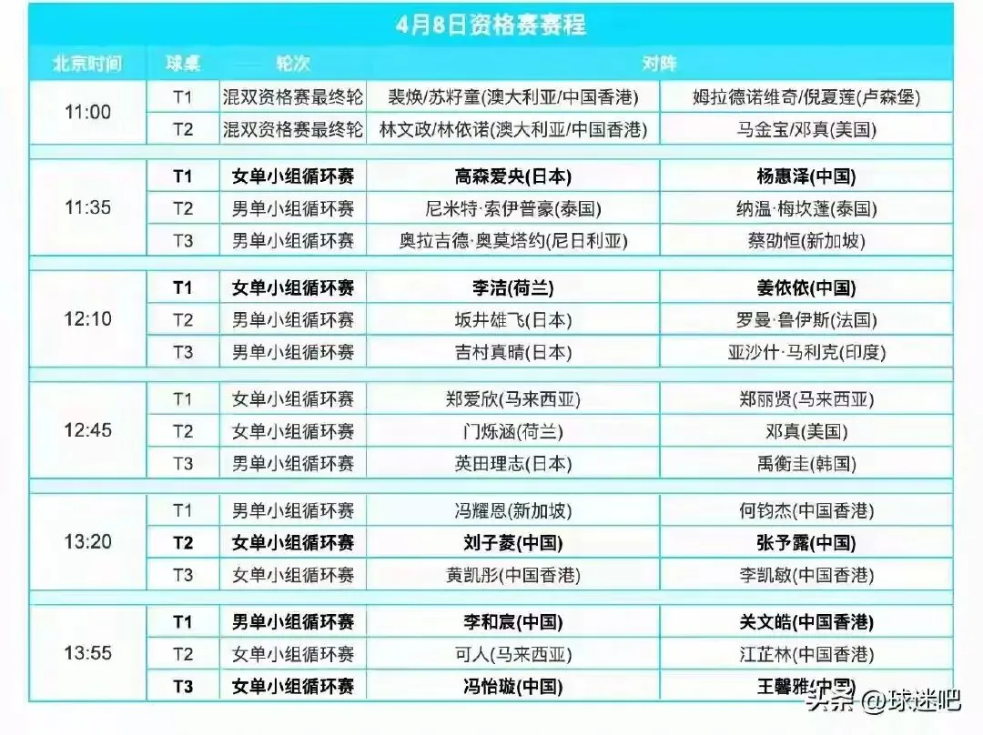 要不要我把4月8日国乒7人的完整对阵和预计开赛时间整理成一张简明赛程表,方便你对照观看?