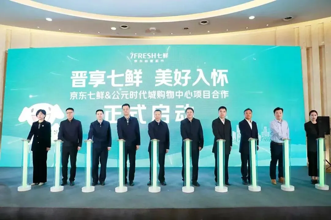 4月7日,京东七鲜与公元时代城购物中心合作签约仪式在晋阳湖国际会议中心圆满举行。山西省商务厅副厅长肖永红、太原市人民政府副市长李永强等领导出席,省市区相关部门负责人及行业代表共同见证。