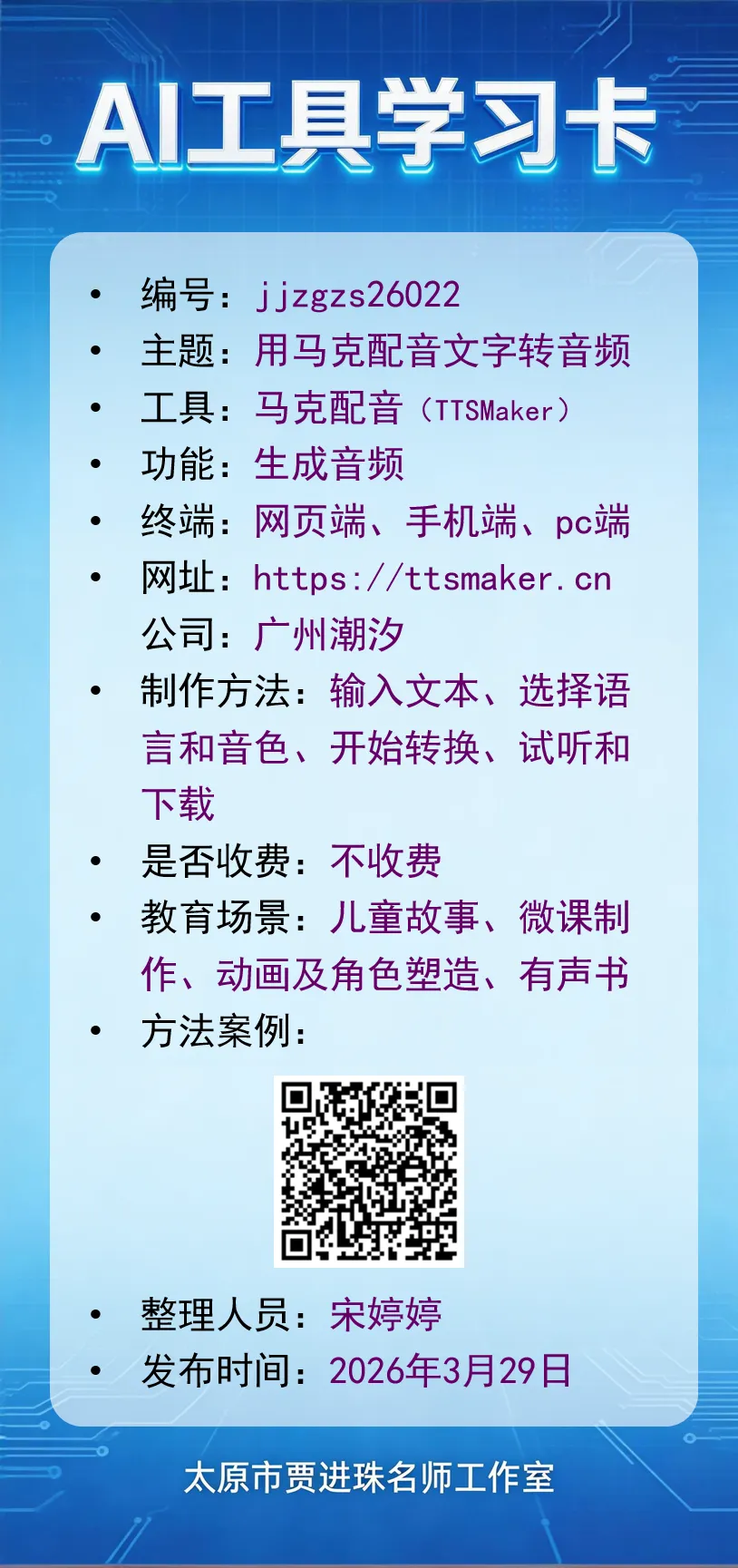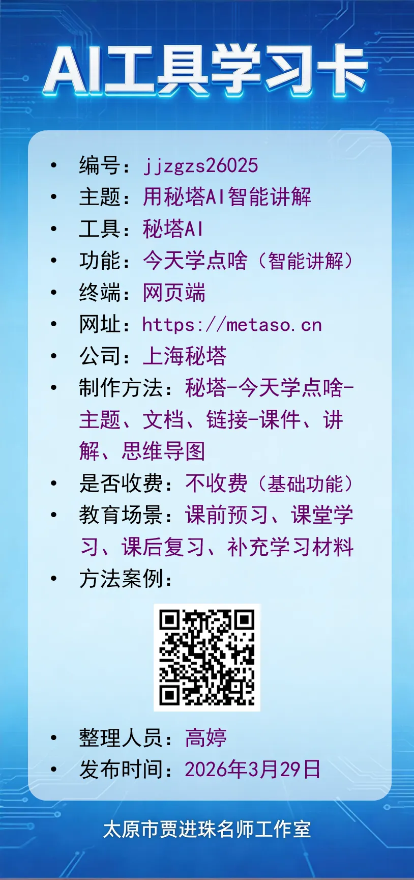 >【AI赋能教学】太原市贾进珠名师工作室“AI工具学习卡”系列(五)