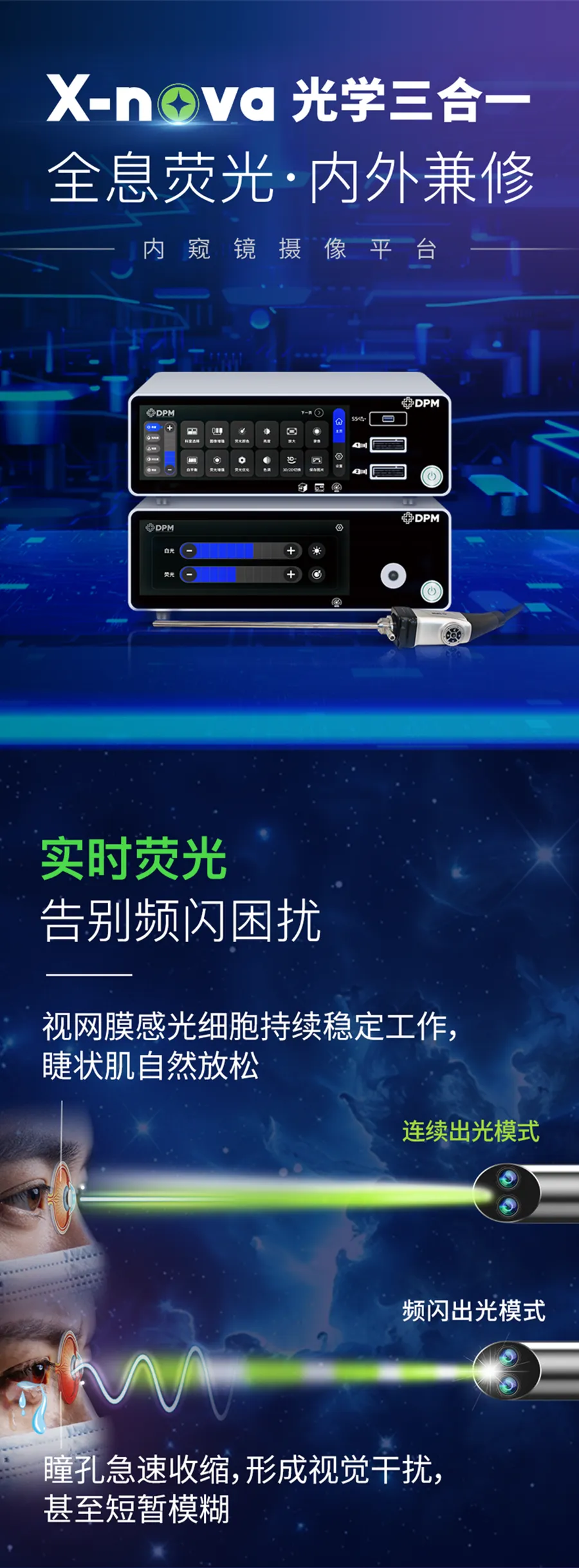 本次直播全程采用 DPM X-nova 平台型内窥镜摄像系统,设备搭载独立荧光成像通道,出光稳定无频闪,可满足肝胆外科体内外多场景临床应用;支持 60fps 满帧融合荧光图像输出,术中实时画面清晰流畅,有效提升肝胆手术视野辨识度;配备全息荧光定量分析功能,通过多维数据精准辅助肝脏、胆道等部位的微创精准手术;镜体可拆式设计兼容多镜适配,在满足肝胆外科多样化手术需求的同时,显著降低医院设备采购与长期运维成本。