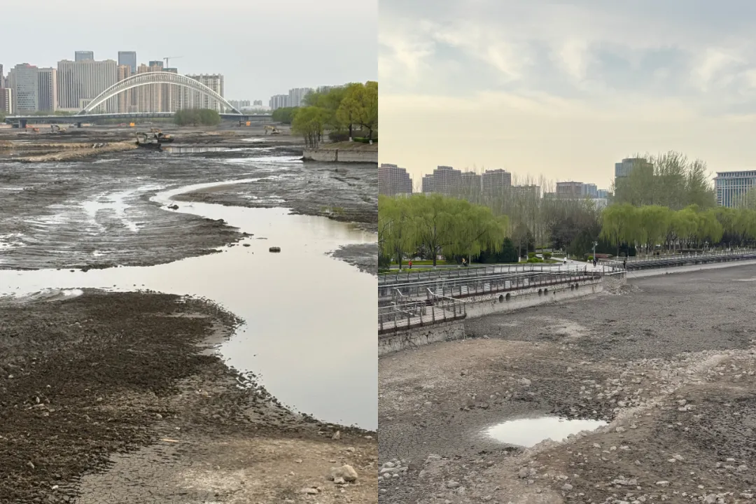4月,清明后的太原,玉兰花和紫藤接替着开,但总觉少了点什么。汾河,干涸开裂的河床与岸边翠绿的垂柳,形成了强烈的视觉冲击。曾经波光粼粼的汾河,如今像是一块被揭开的疤痕,也露出了这座城市的“底色”。根据官方通知,太原汾河景区正在对5、6、7号橡胶坝进行更换施工,因为这些橡胶坝已接近、或达到使用年限。