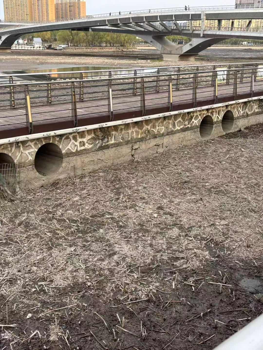 当河水抽干,那些在淤泥中挣扎的生命,成了这场城市维护中被忽略的代价。这引发了一个值得深思的问题:在大型生态公园的维护中,我们是否可以有更具“温情”的施工方案? 例如分段施工等。