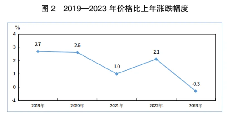 物价:居民消费价格比上年下降0.3%。其中:食品烟酒价格下降0.5%,医疗保健价格上涨1.1%,教育文化和娱乐价格下降0.7%,衣着价格上涨0.1%,其他用品和服务价格上涨2.1%,生活用品及服务价格上涨0.8%,居住价格下降0.4%,交通和通信价格下降1.6%。