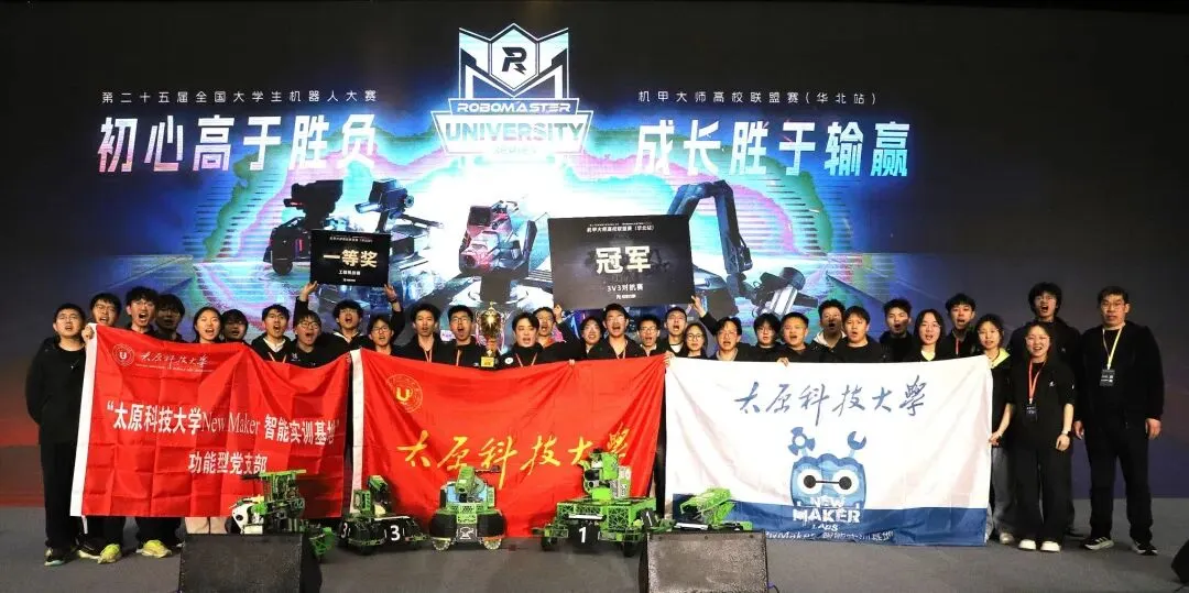 4月2—5日,第二十五届全国大学生机器人大赛RoboMaster 2026机甲大师高校联盟赛(华北站)在内蒙古科技大学落幕。太原科技大学NewMaker智能实训基地机器人战队力克清华、北航等37支高校劲旅斩获3V3对抗赛冠军、工程挑战赛一等奖,以硬核科创实力彰显山西高校学子的工程素养与创新锋芒。