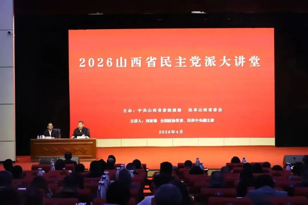 4月7日,由中共山西省委统战部主办、民革山西省委会承办的2026山西省民主党派大讲堂首期讲座在山西社会主义学院举行。全国政协常委、民革中央副主席、中华职业教育社副理事长刘家强同志作《以人口高质量发展支撑中国式现代化》的专题辅导报告。山西省政协副主席、民革山西省委会主委张复明主持报告会。