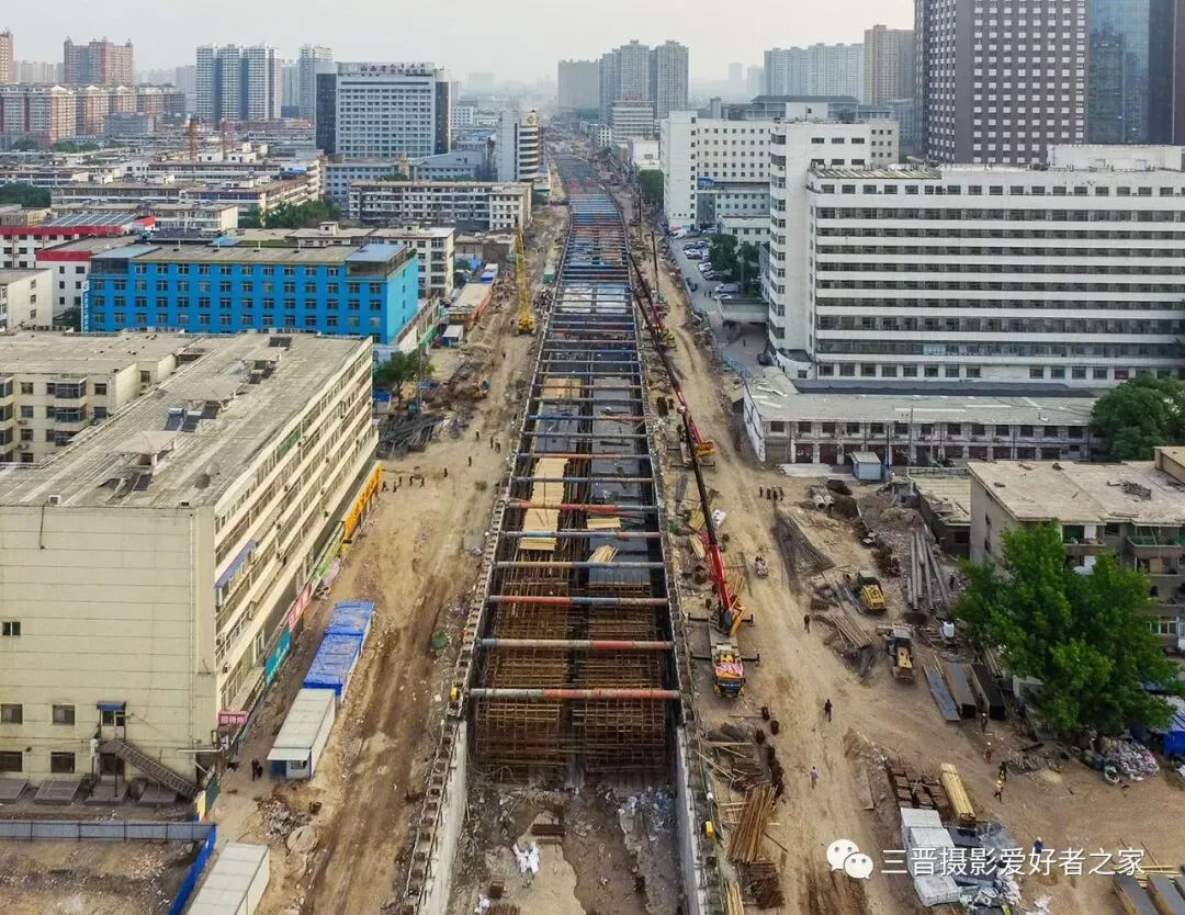 这一通道全长840米,距地面最深处达到9米以上,是太原市有史以来最大的建设基坑,也是整条道路改造中涉及施工人员最多、施工难度最大的一项工程。考虑到这一工程地下水位浅、周围高大建筑多、工期紧等各种因素,为了保障施工进度和安全,施工建设者们采用了先进的工法桩施工工艺,在开挖基坑前,首先在基坑周边打下工法桩加混凝土的围墙,以此来解决普通钢板桩支护强度不够的问题和地下水浸泡基坑的难题。在此基础上,上千名建设者在这里分出四个作业面,不分白天黑夜的进行同步作业,以自己的实际行动确保了整个工程进度的顺利完工。