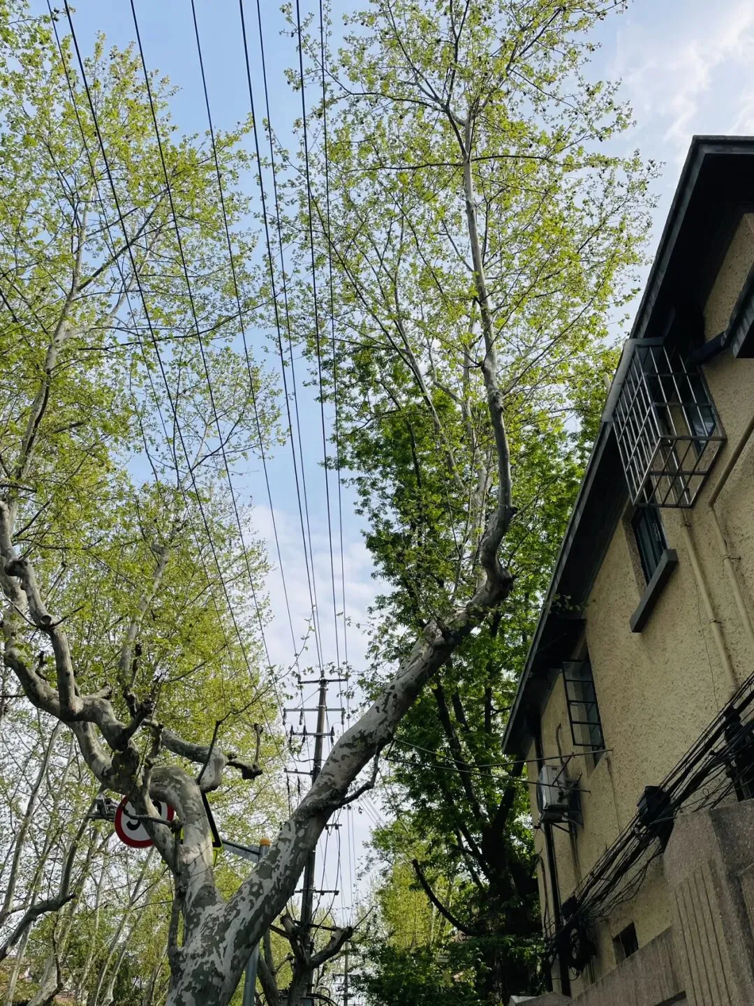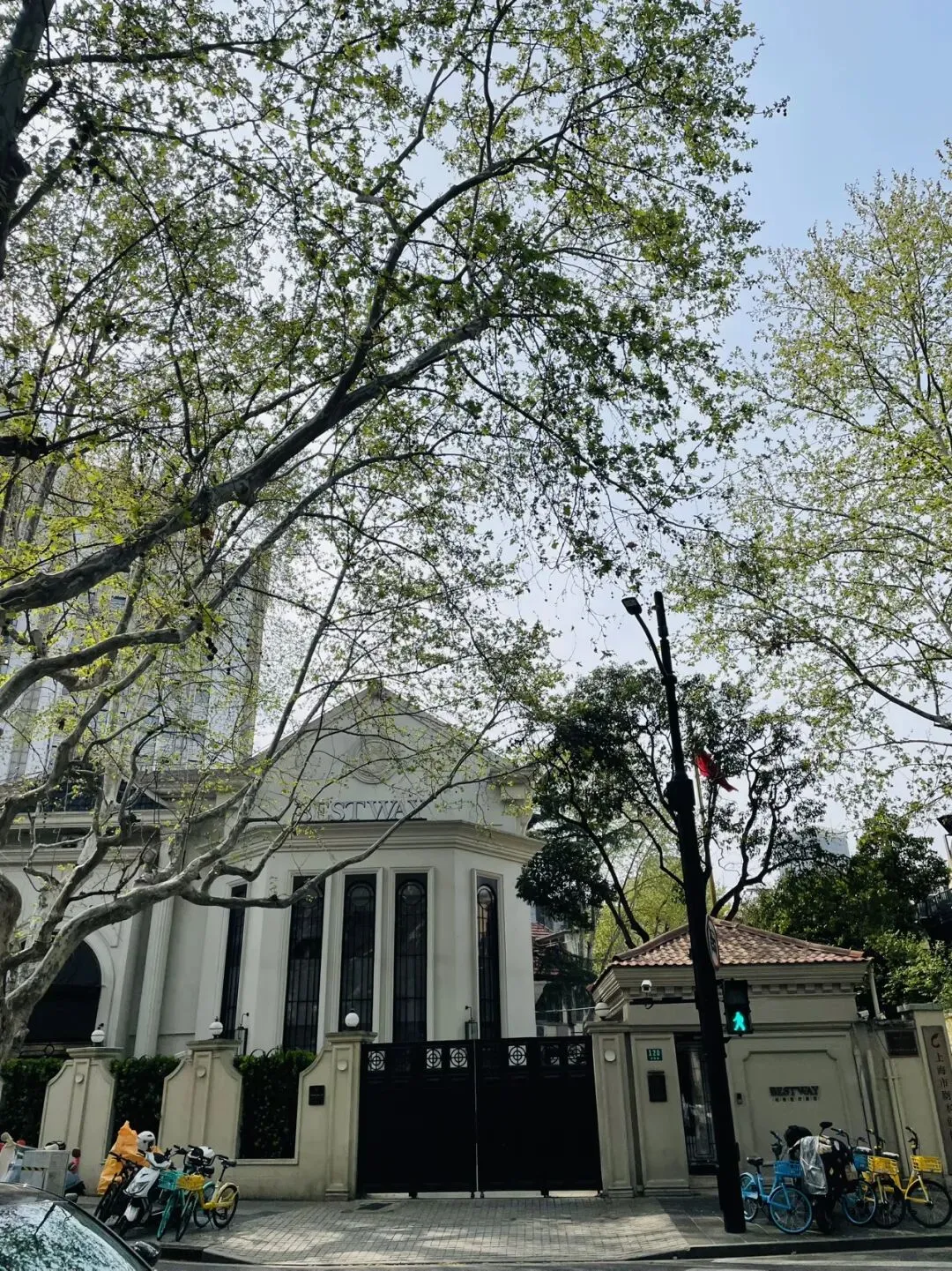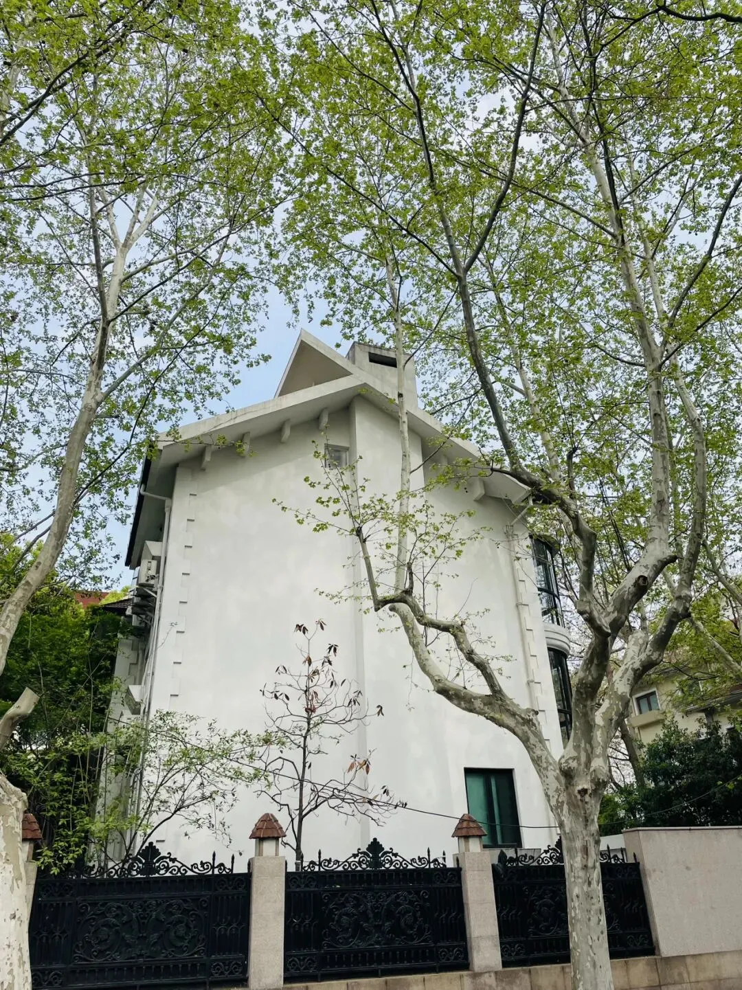 白墙配着绿色的梧桐叶,宁静而优雅,述说着老上海的韵味。