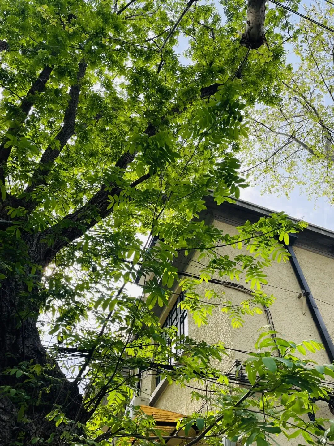 槐树高大而浓密,让人既感到岁月的年轮,又能感受到生命的蓬勃