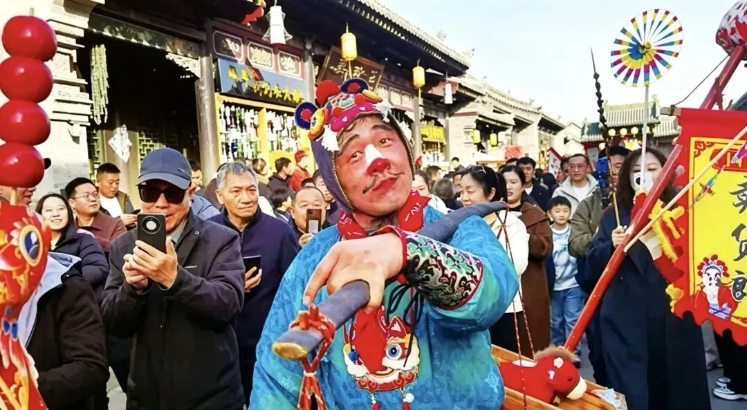 杨翔,37岁,忻州原平人,深耕民间演艺行业20余年。2026年春节期间,他在太原古县城扮演"卖货郎",凭借头戴虎头帽、肩挑40余斤货担、诙谐逗趣的即兴表演迅速走红网络。他无剧本的原生态互动、地道乡音与极具感染力的笑容,被网友亲切誉为古城"显眼包"、"行走的快乐制造机"。其表演视频全网传播量破亿,成为山西文旅现象级IP,也让全国网友记住了这位质朴热忱的原平汉子。