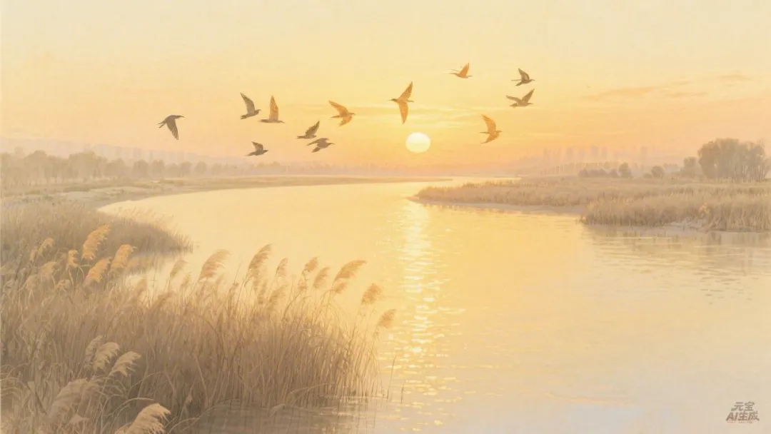 太原元素:汾水、黄云(指北方秋云)、白草、牛羊、牧笛,是宋时太原郊野的牧歌。味道:汾河水碧绿流淌,天边云色昏黄,草原稀疏,牛羊归圈后,只有牧笛声在月光下悠扬。今日打卡:汾河公园四期或湿地公园,傍晚看落日熔金,水面如镜。