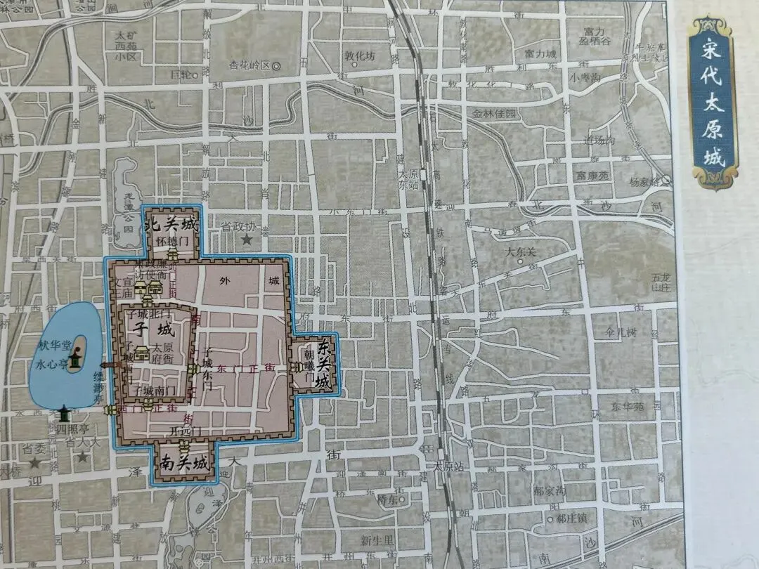 1000多年前,陈尧佐来并州做官,受制于汾河频繁发洪水,威胁到太原城的安全,便在汾河岸边筑堤围堰,引来汾河水灌入洼地形成湖泊,周围栽种万株柳树固沙凝土,湖中修建楼台亭阁——中心有秋华堂,堂外有芙蓉洲,同云阁上下两层,地处溪北最高处,四面明窗,后来叫做四照亭,岸边还有缥缈亭。俯瞰柳林稻田农舍渔庄,在酒肆茶馆内休闲,推杯换盏享受市井生活。由此,诞生了“花花正定府、锦绣太原城”的民谚。