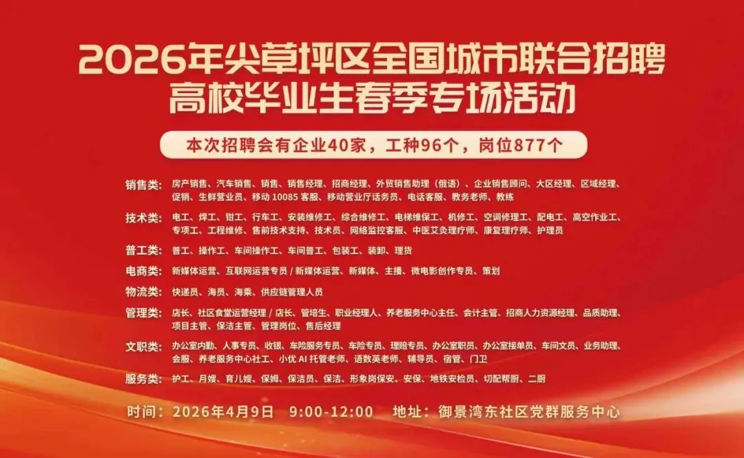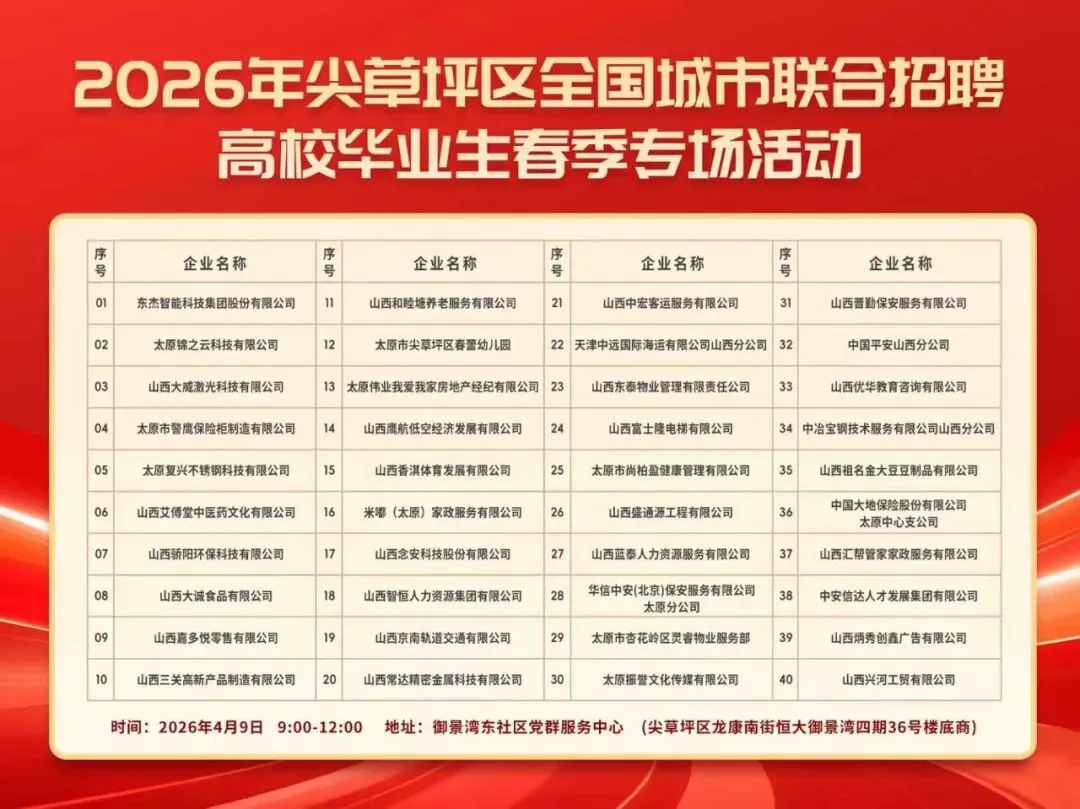 >今天上午,太原市尖草坪区877个岗位招聘