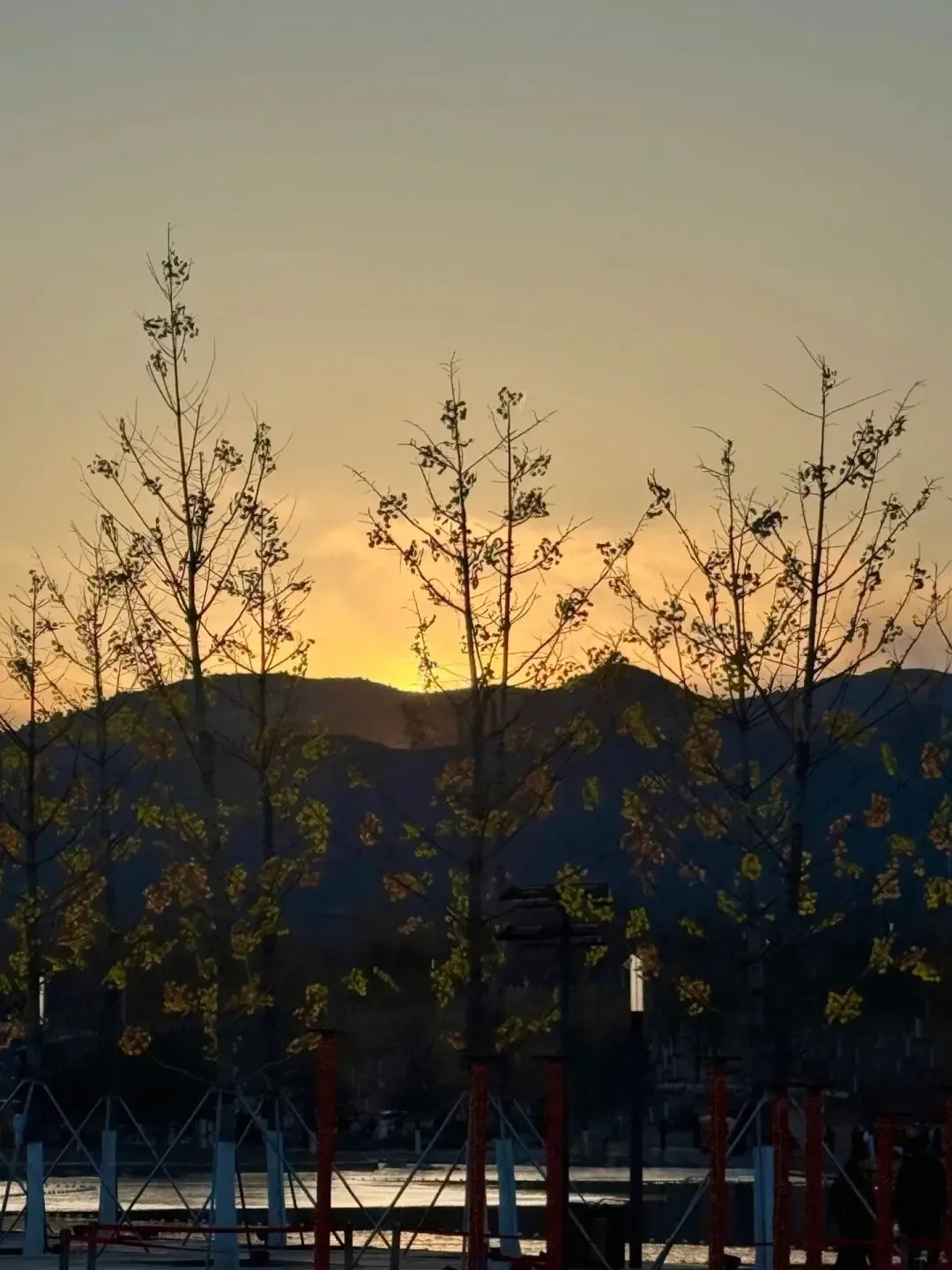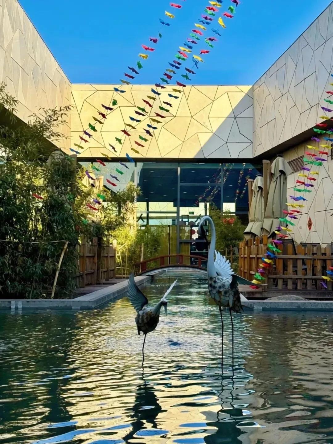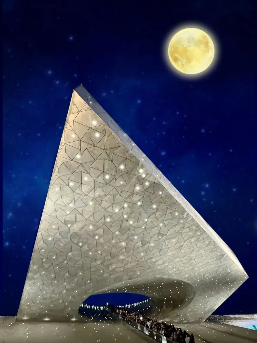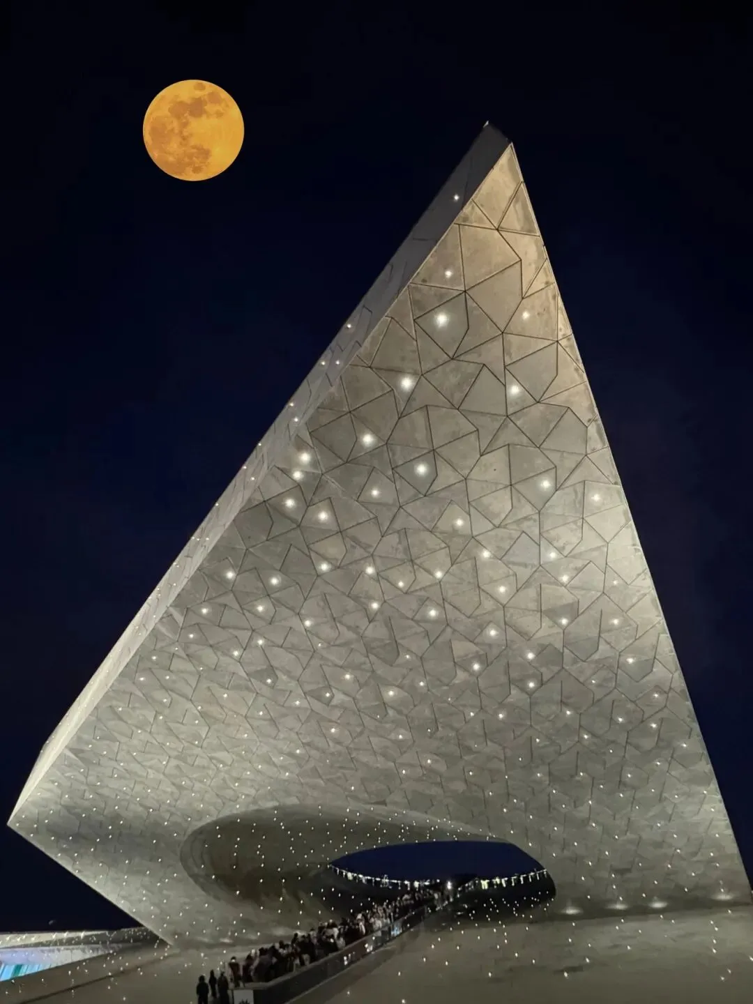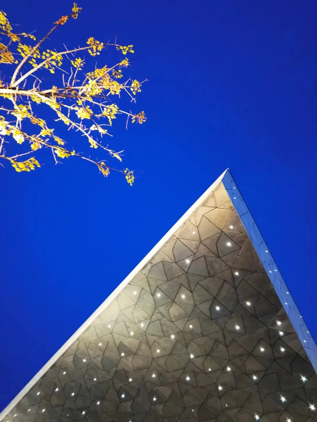 吃了一根烤面筋的功夫,追完了一场完美的日落。三座玻璃穹顶在湖面投下对称的影子,远山衔着落日,把天空染成温柔的渐变蓝。现代建筑与自然山水完美相融,连空气里都满是松弛感,这大概就是旅行最动人的瞬间吧。