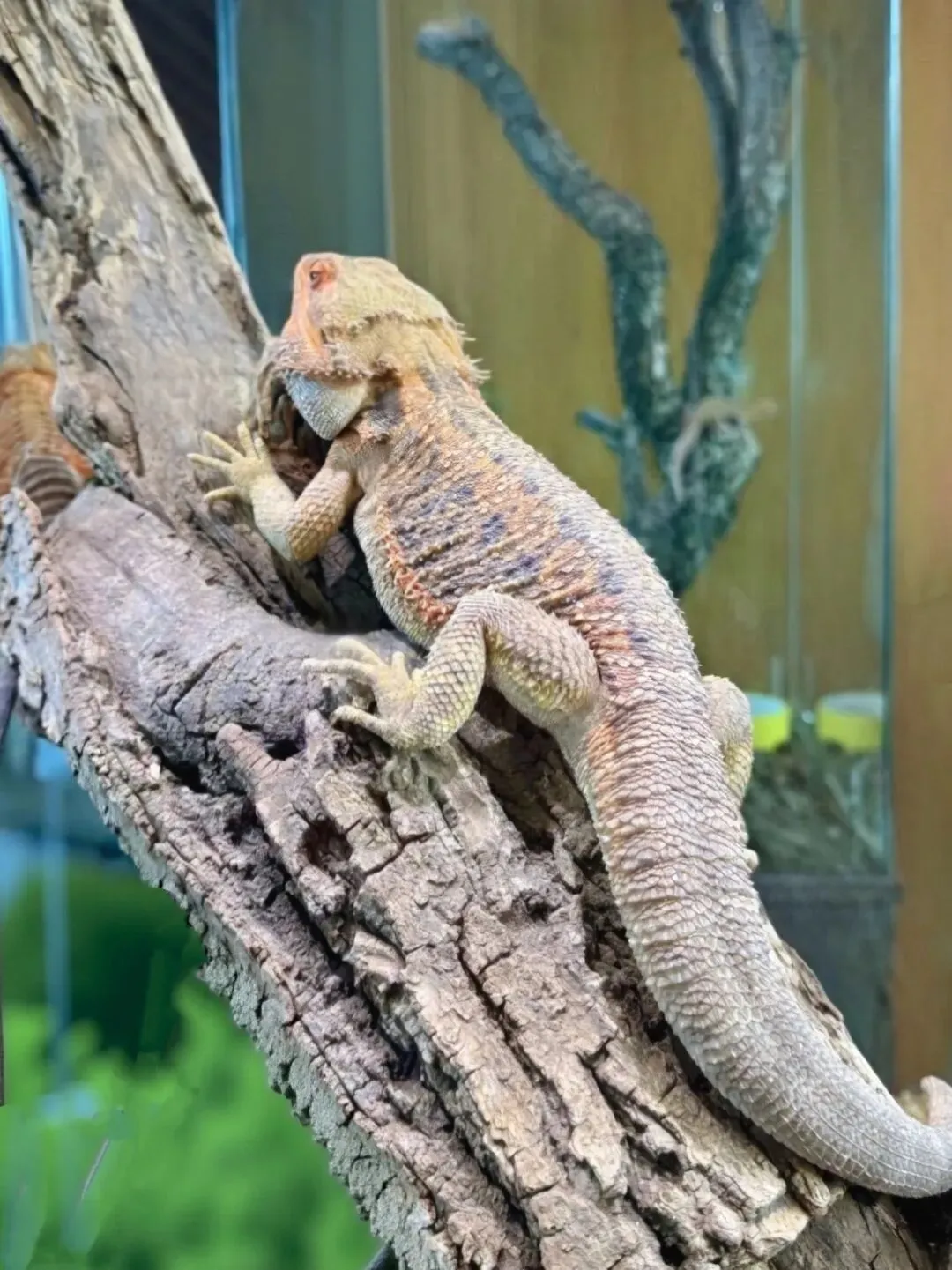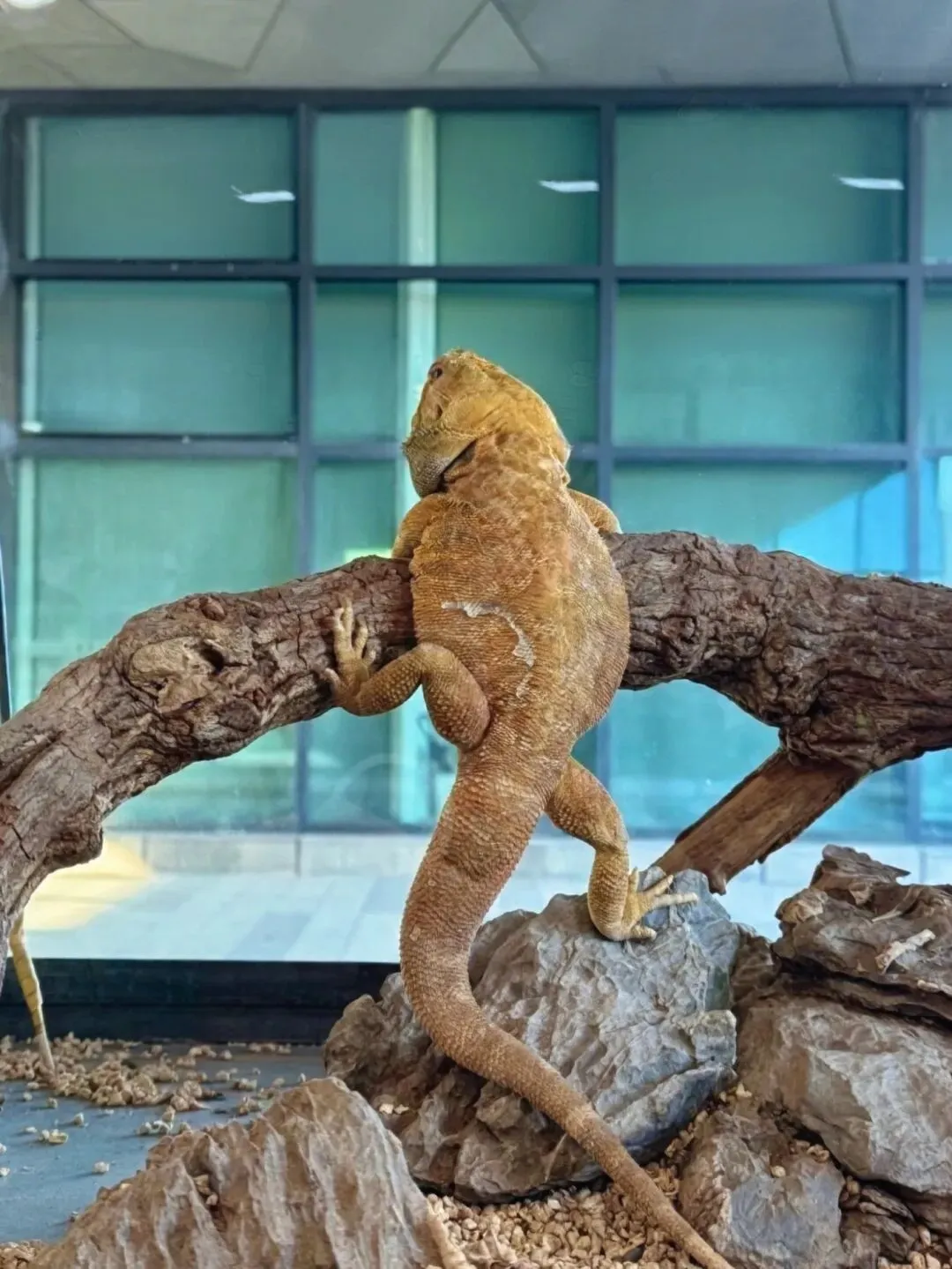 隔着玻璃展区,邂逅了这些自带野性的爬行动物。鬃狮蜥们慵懒地攀附在枝干上,好奇地打量着玻璃外的世界。