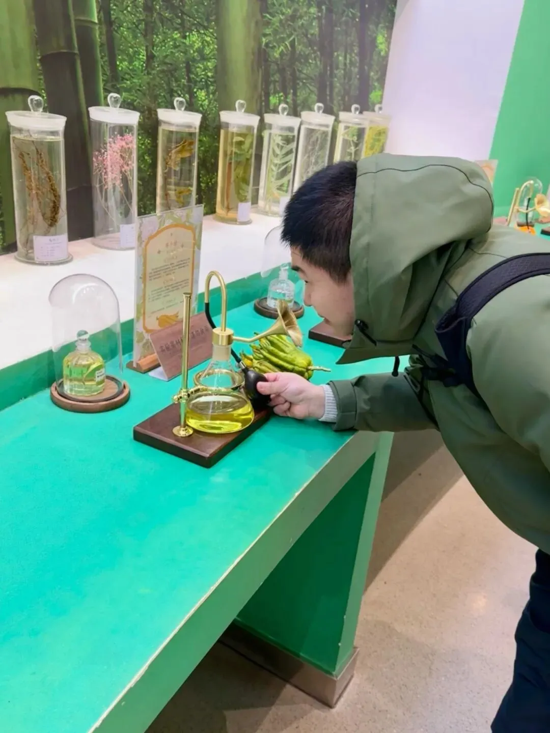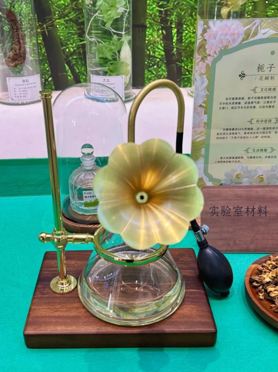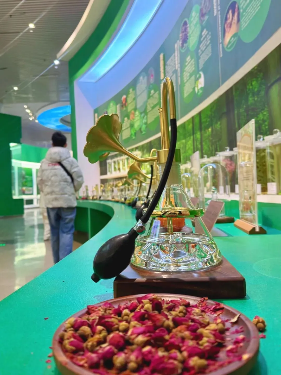在芳香展区,第一次体验到放大香味的奇妙装置。按下气囊,佛手的清冽香气便顺着黄铜喇叭缓缓漫开,原来平日里只在香薰里见过的佛手香,真实的味道竟如此清新治愈,带着柑橘类的甜润与草木的清苦,层次丰富又治愈。