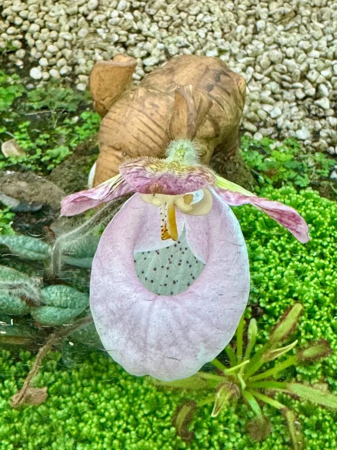 我原以为这就是逮小苍蝇的猪笼草,经豆包科普才知它其实是兜兰,而且还是国家一级保护植物,实用的知识点又增加了。