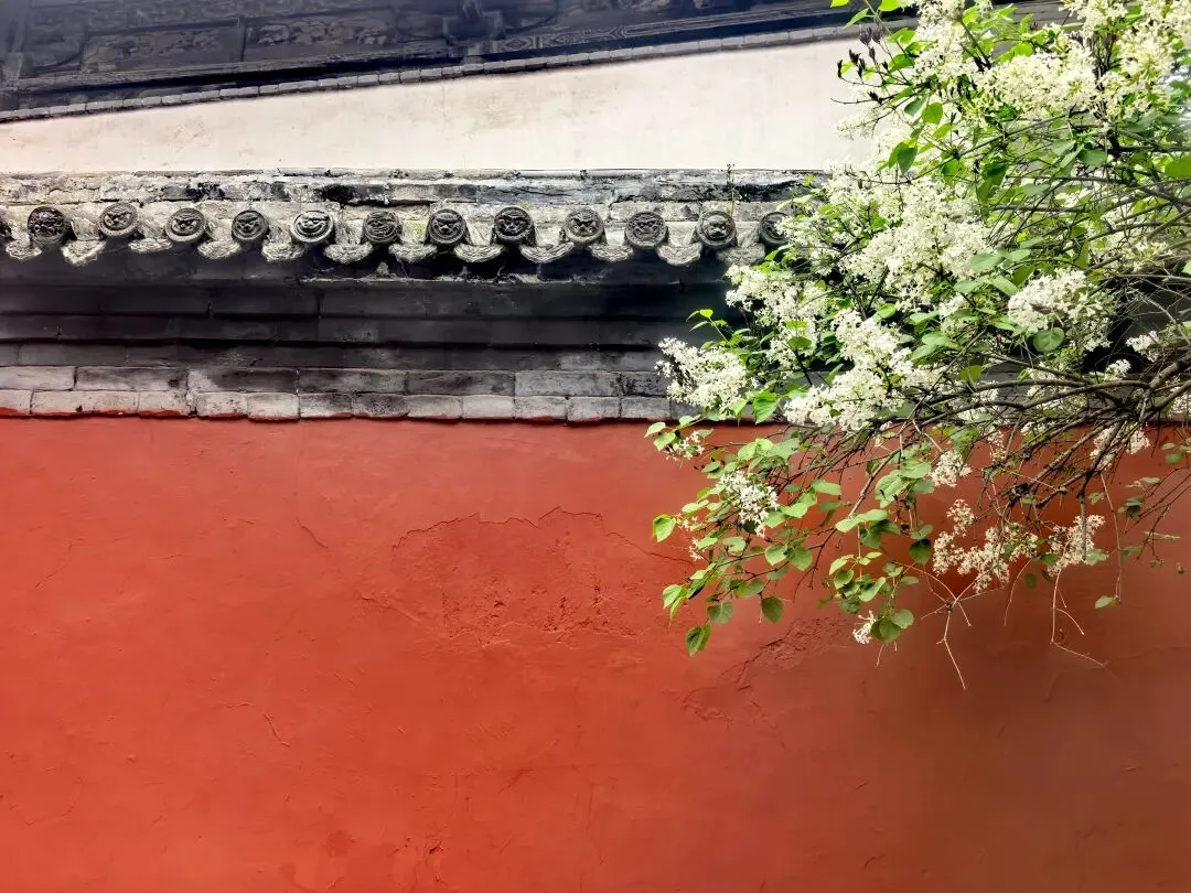 可能是“步移景换”的缘故吧,我忽然发现,晋祠竟有这么多丁香,而且正值盛放期——一簇簇,一团团,一片片,白如积雪,粉似流霞。香气袭人,浓而不烈,沁人心脾,仿佛要把整个晋祠的春天都送进你的肺腑。