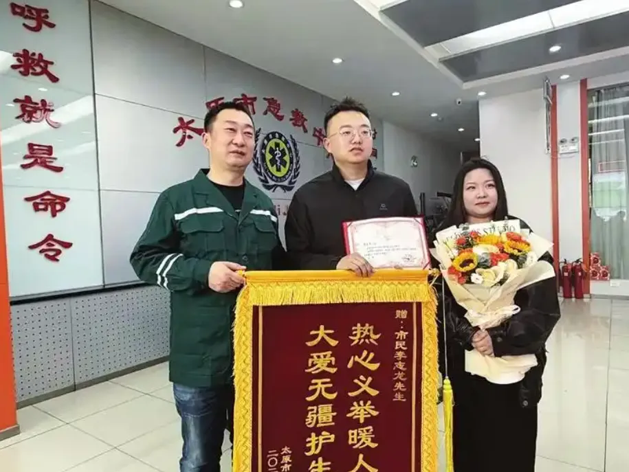 4 月 3 日下午,太原市急救中心的工作人员专程来到李志龙家。他们带来了一面锦旗——"热心义举暖人心 大爱无疆护生命",还有一份特殊的聘书:太原市急救中心社会监督员。"急救是争分夺秒的事,李先生给我们展示了'感谢您为生命让路'的宗旨。"市急救中心相关负责人表示,"希望更多人向他学习,敬重生命、敬畏生命、感恩生命。"更让人暖心的是,太原广源海广汽传祺店在刷到视频后,认出李志龙开的是自家品牌的车辆,主动联系他,送上传祺M8HEV 限量车模与免费保养服务。"这样的正能量值得被看见、被鼓励。"门店负责人说,"也希望带动更多人参与到传递城市温暖的行动中来。""肯定开心!没给'00 后'丢人,26 年了,头一回有这种人生经历,那么多人夸我,老自豪了!"他笑着说。这个黑龙江小伙,来太原工作生活已经3 年多,早已把这里当成第二故乡。妻子王爽在一旁补充道:"这只是邻里之间的举手之劳,今后遇到类似情况,我们还会毫不犹豫帮忙。"让善意被看见,让温暖被传递