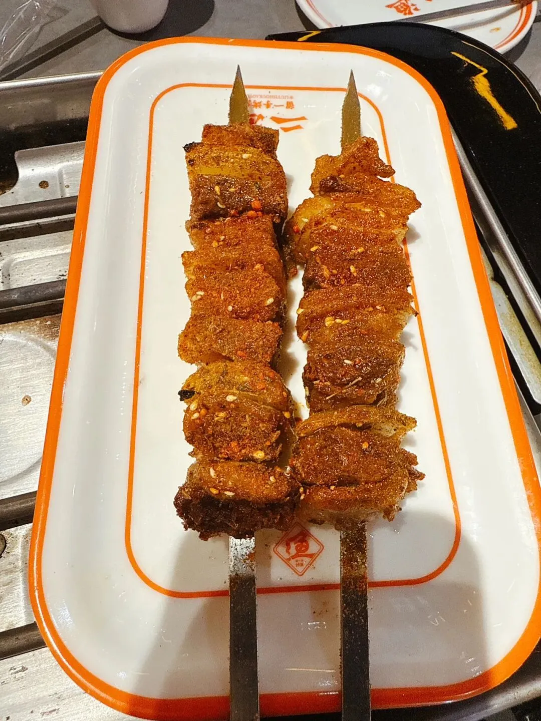 · 五花肉烤得滋滋冒油,外焦里嫩,一点也不腻。
