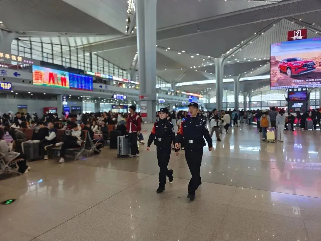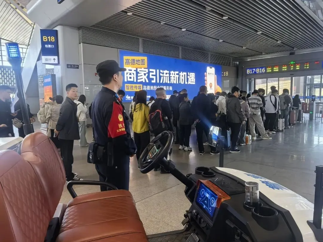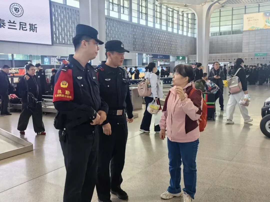 清明小长假期间,太原南站日均客流达11万人次,客流高峰日达13.8万人次,面对短途旅客多、出行总量大、客流峰值高的多重考验,太南所精准预判客流高峰时段,提前掌握客流动向,动态调整警力,确保旅客出行平安有序。