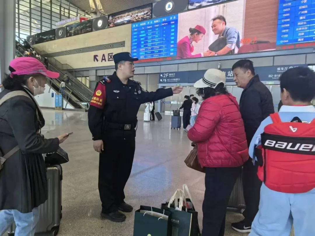 假期途中,平安是底色,温暖是亮色。太南所始终秉持“人民公安为人民”的初心使命,为提升出行体验,派出所在进站口设立“党员先锋岗”和“志愿服务队”,实时为旅客提供问询指引、行李搬运等帮助,让党旗在一线飘扬;同时,加大站区宣传力度,提醒旅客看管好随身行李,大力开展身份证“完璧计划”,解决旅客急难愁盼的问题,用实际行动践行新时代人民警察的责任与担当,让旅客的出行更暖心更安心。