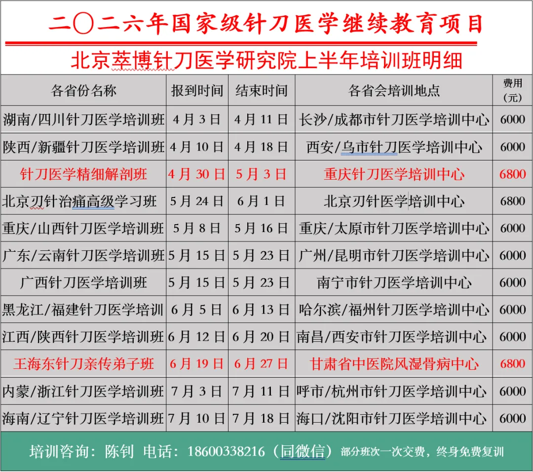 2026年5月8日重庆针刀医学临床技能新进展培训班←点击查看