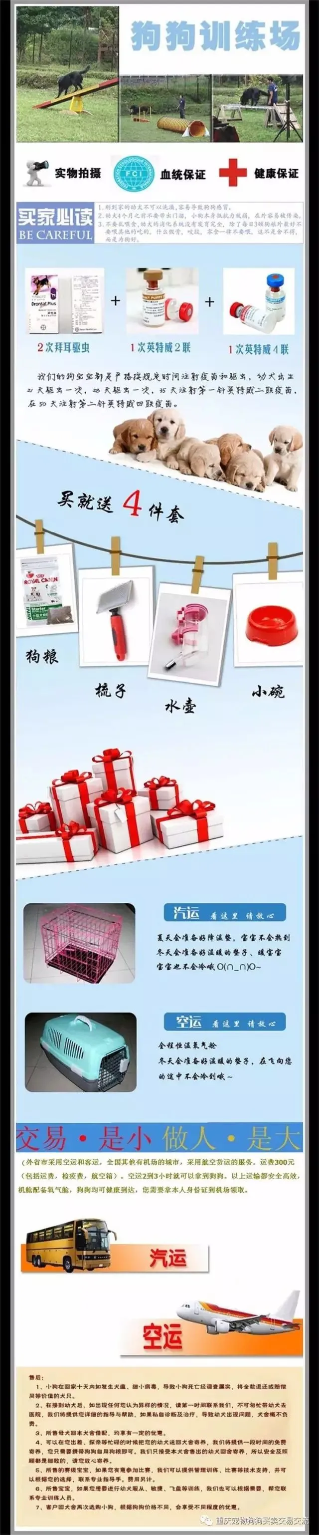1:我的狗狗 保证2天不满意,可以退还的 15天内出现犬瘟、细小、管状疫苗等疾病,可调换同价位的狗狗。