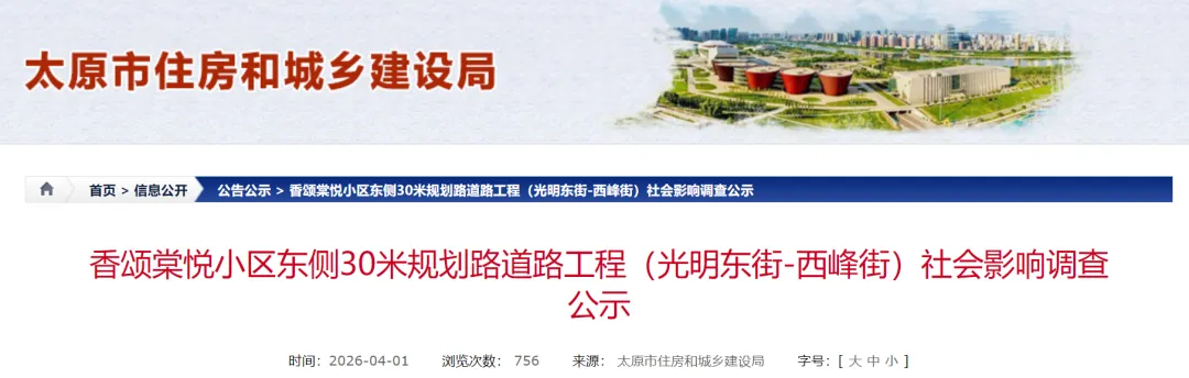 香颂棠悦小区东侧30米规划路道路工程(光明东街-西峰街)由太原市城乡基础设施建设中心建设,建设地址位于太原市小店区。