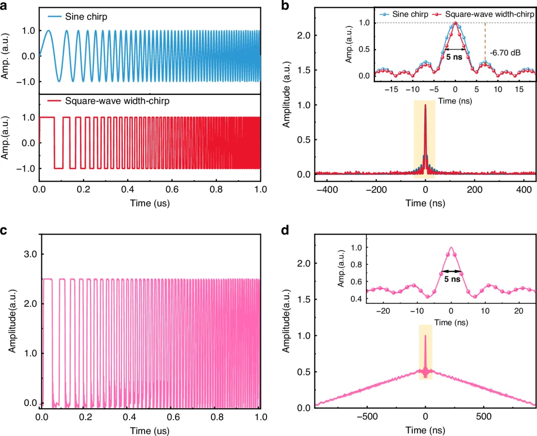 本文提出了一种复数域方波宽度啁啾脉冲压缩方法,突破了这一物理限制。具有陡峭边沿和丰富高阶谐波成分的复数域方波宽度啁啾脉冲,在经过匹配滤波后可形成压缩的 δ 脉冲,此时决定传感空间分辨率的,不再是原始脉冲宽度,而是压缩后脉冲的半高全宽。