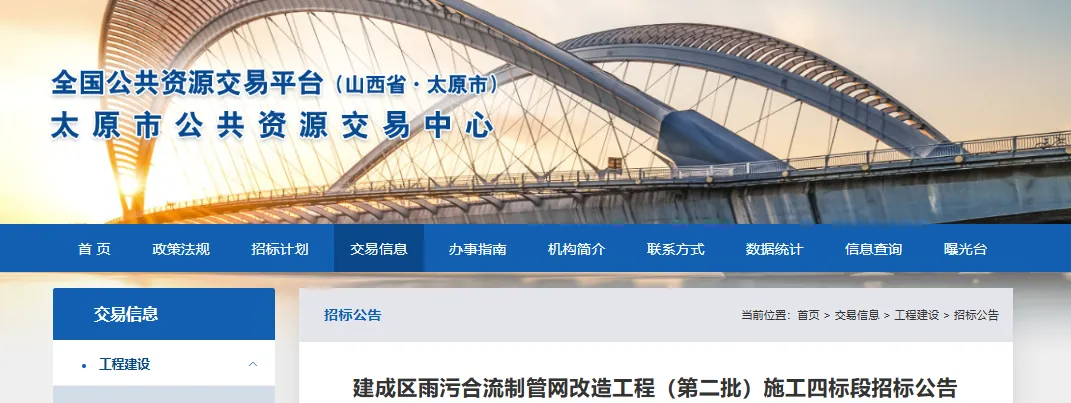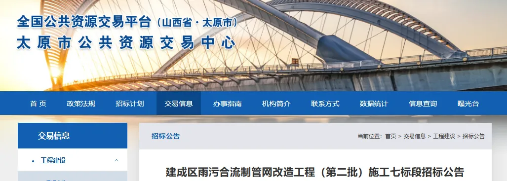 本招标项目划分为1个标段,本次招标为其中的建成区雨污合流制管网改造工程(第二批)施工七标段。本次招标内容为本项目施工图纸、工程量清单范围内全部工程施工。(来源:晨报山西)