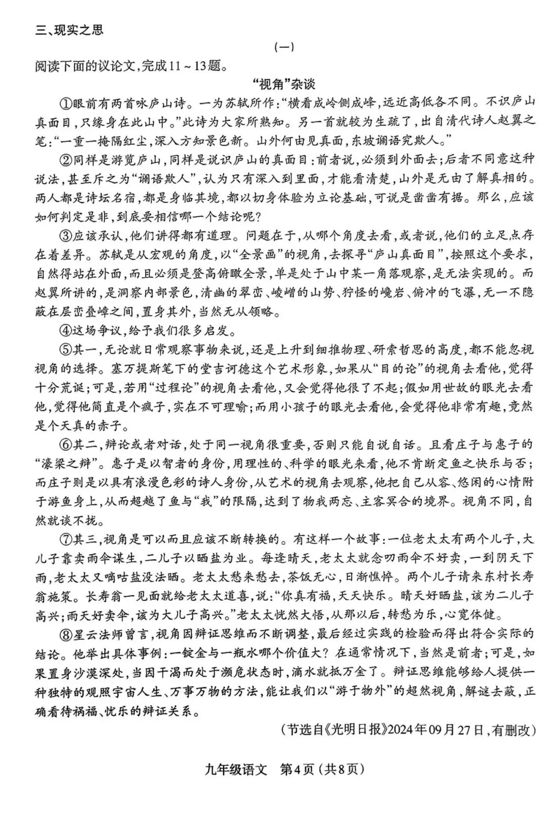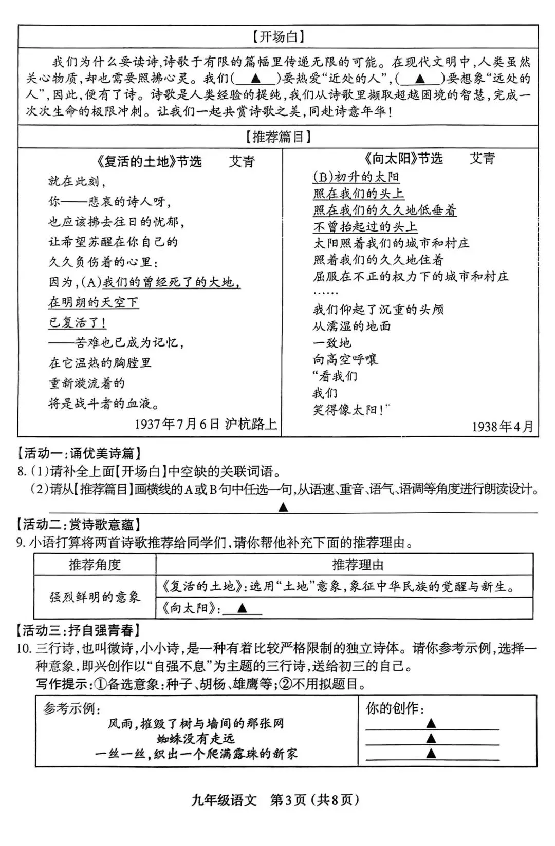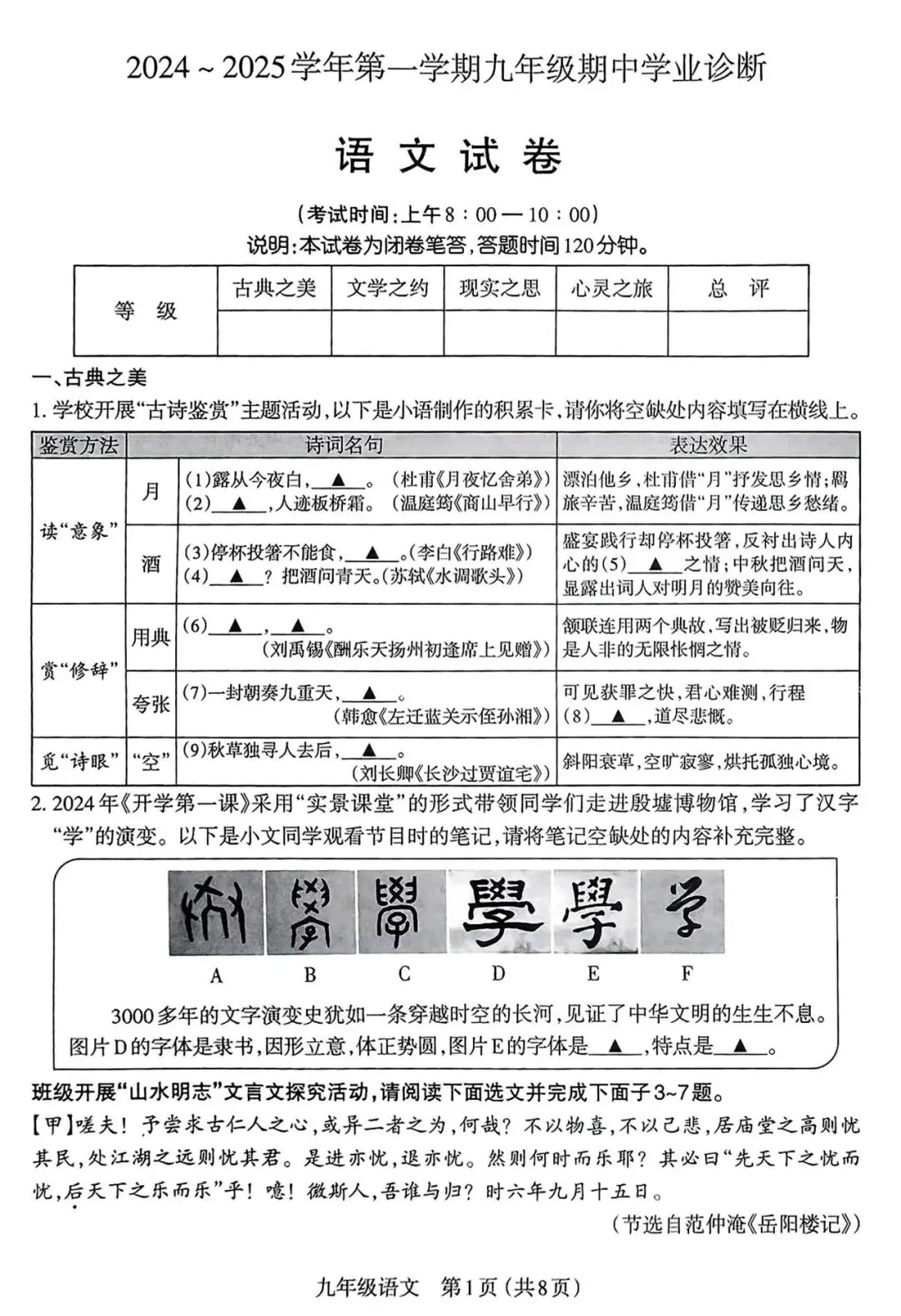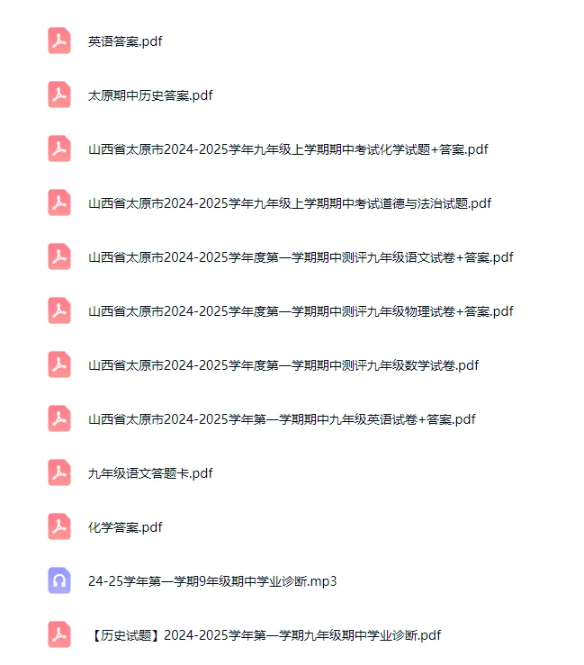 本次为大家准备了山西省太原市2024-2025学年度第一学期期中测评九年级语文试卷。以语文为例,以及配套的答案解析。供大家下载学习。