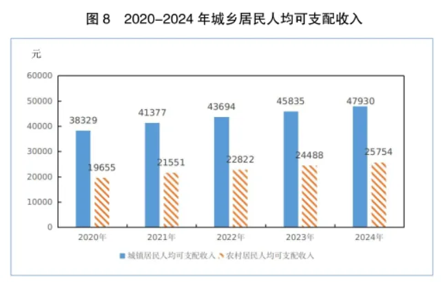 居民收入消费:全年居民人均可支配收入44671元,比上年增长4.7%。按常住地分,城镇居民人均可支配收入47930元,增长4.6%,城镇居民人均消费支出28551元,增长8.1%;农村居民人均可支配收入25754元,增长5.2%,农村居民人均消费支出19046元,增长7.3%。城乡居民收入比为1.86:1。