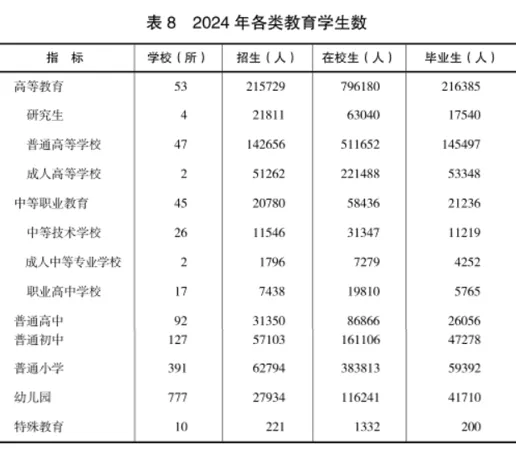 全市学前三年毛入园率98.48%;小学、初中巩固率均达到国家标准;高中阶段毛入学率98.36%。2024年高考一本、二本达线率和录取率在全省稳居前列。