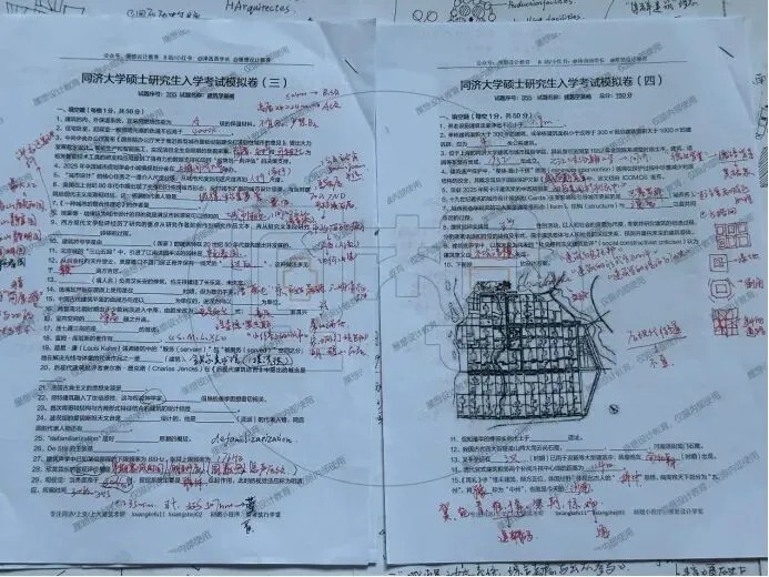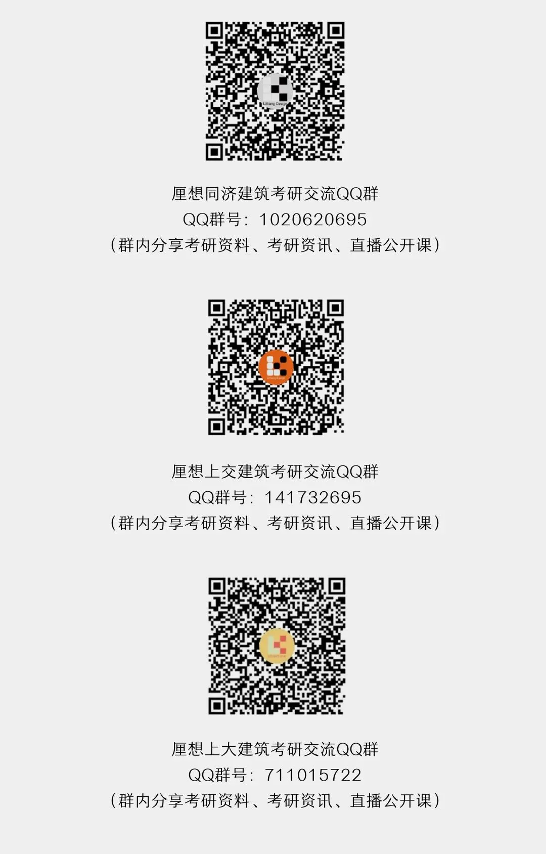 在上完暑假班后,可以结合录音笔记,两本书(《中国古代历史图说》《现代建筑:一部批判的历史》)暑假班ppt、厘想大综合全书,生成自己的一份思维导图,后期就主要用它来背,和做知识检索。暑假也可以开始做历年真题了,同济的题库分为历史技术方向,还有大综合,前期可以先做大综合比较简单,后期在做方向卷,比较难,大家也不用担心,现在不怎么会有这么难。做历年真题最重要的,是必须把这一道题相关联的所有知识点延伸,并且掌握,近几年的真题尤为重要,同样可以留几分真题当作考前模拟。