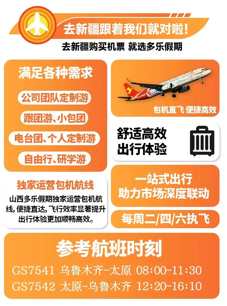 今起,太原直飞乌鲁木齐!班期、票价、个人/团队游快速了解!