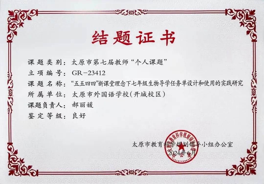 以生命为帆,以素养为舵。太原市外国语学校(开城校区)生物组的老师们,用多元课堂激活探索热情,用丰富实践拓宽认知边界,用温暖陪伴助力成长之路。未来,他们将继续坚守教育初心,深耕生物学科教学,将核心素养培育融入教学全过程,引领学生在生命世界中探索未知、收获成长,助力每一位同学成为兼具科学精神、实践能力与人文情怀的时代新人!