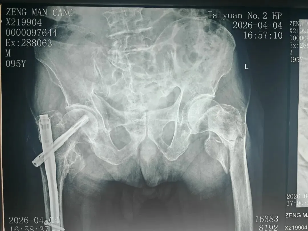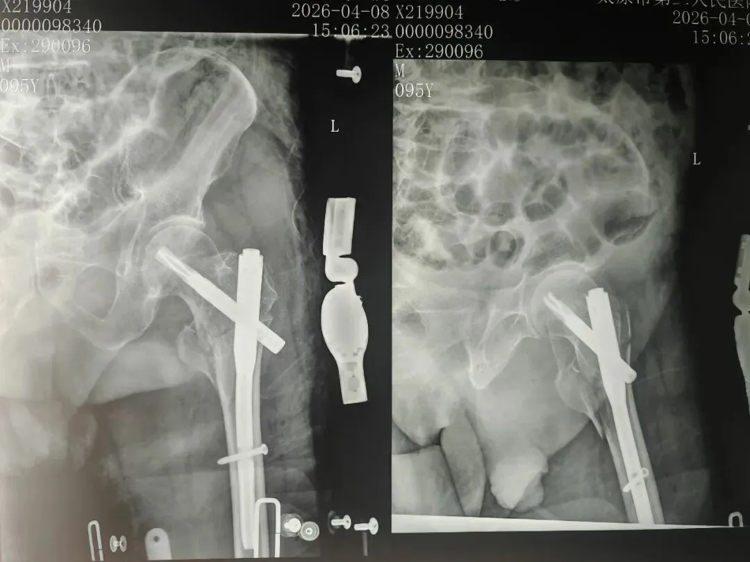 近日,太原市第二人民医院骨科团队成功为一名95岁高龄老人二次骨折实施了左股骨粗隆间骨折微创内固定手术。患者曾于4年前于我院行右侧股骨粗隆间骨折手术治疗,术后恢复良好。此次受伤后,患者家属因为信任我院的技术和服务再次就诊。