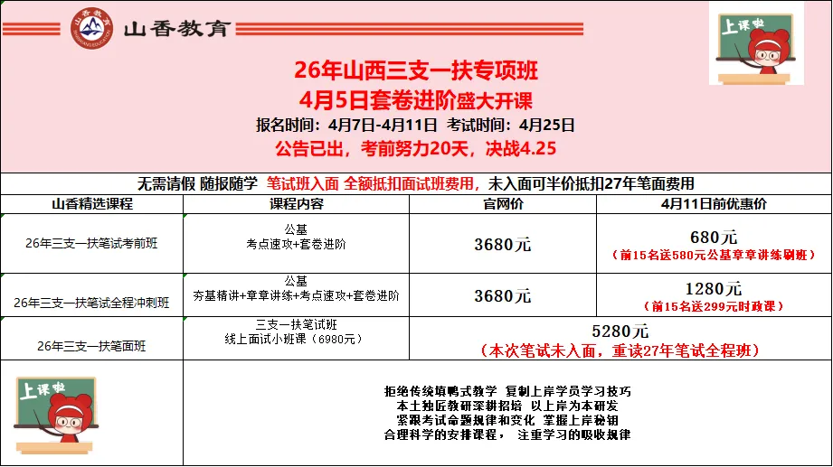 🔥山西三支一扶4月25日开考