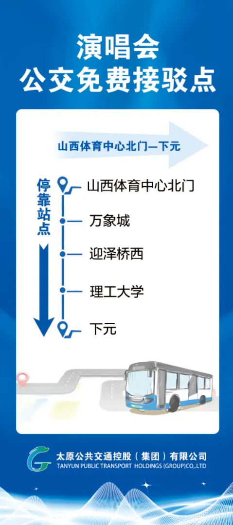 下元接驳专线(15:00-18:30),由迎泽大街公元时代城1号门前始发至山西体育中心北门;