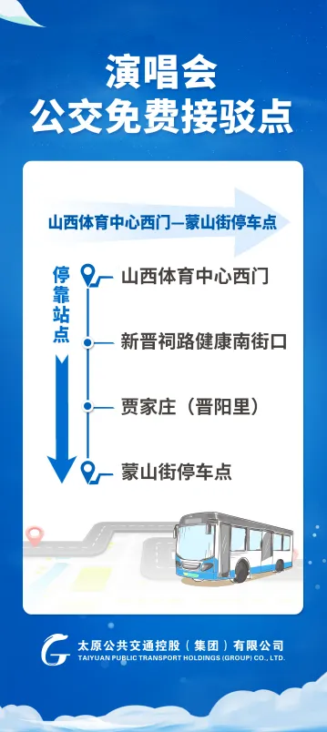 开通2条由山西体育中心西门至2个临时停车点的公交接驳专线。由山西体育中心西门健康西路路西始发,分别开往滨湖街停车点和蒙山街停车点: