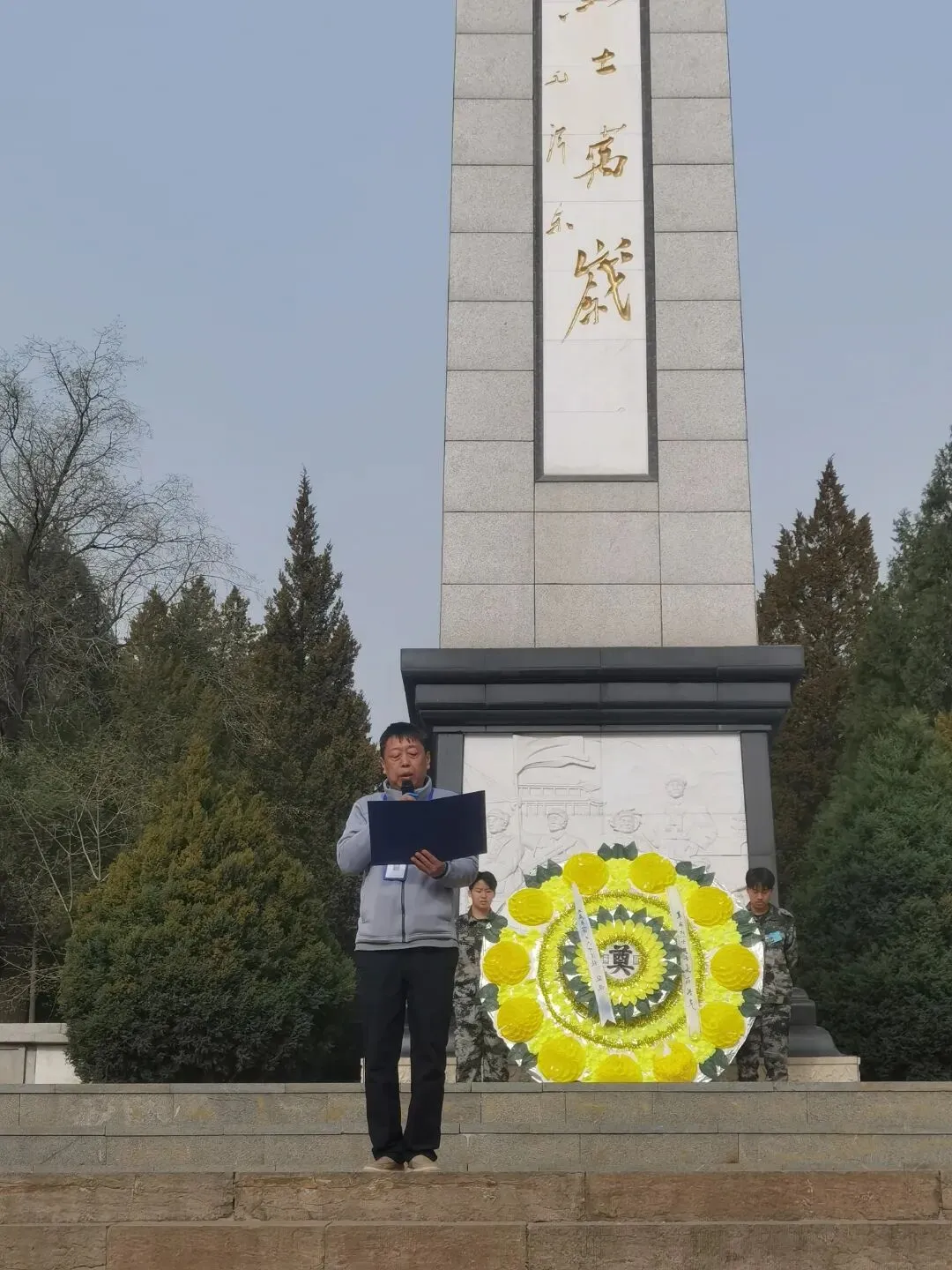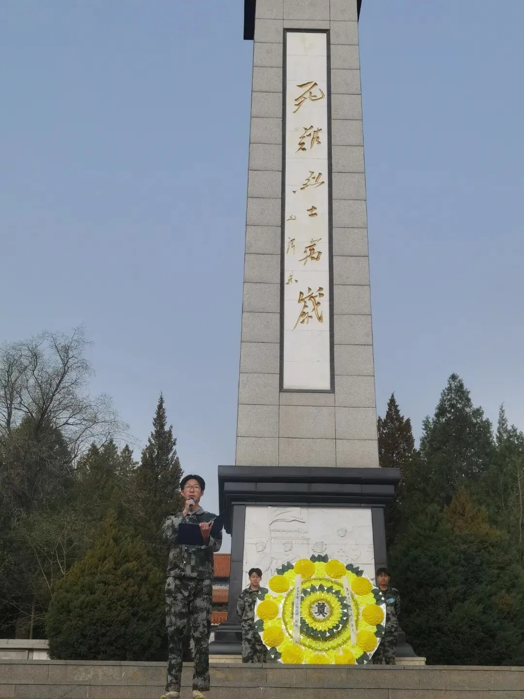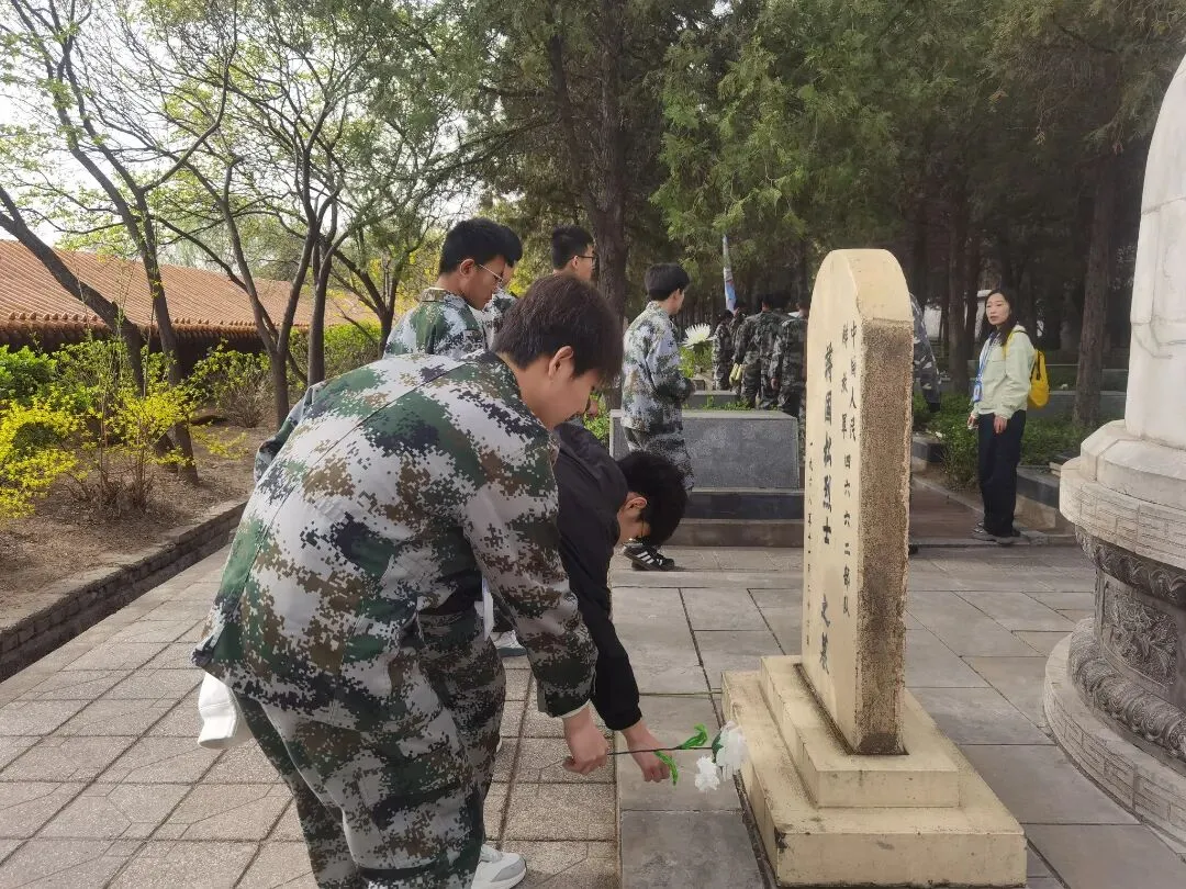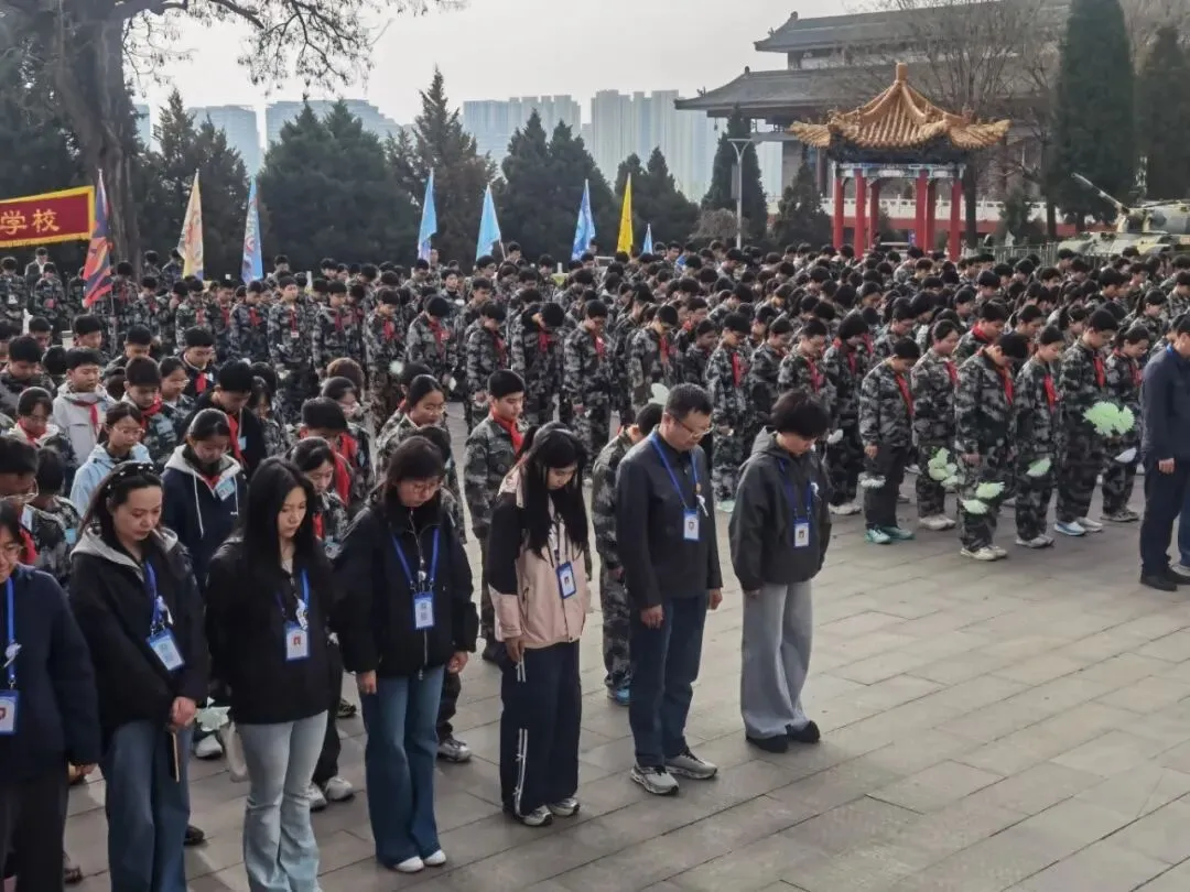 默哀毕,学生代表闫泽潇怀着崇敬的心情向烈士致词。他向全体同学发出号召,希望大家以革命先烈为榜样,铭记历史、不忘初心,传承红色基因、弘扬爱国精神,将对先烈的缅怀转化为勤奋学习、奋勇拼搏的动力,以青春之姿肩负时代使命,以实际行动践行初心担当。