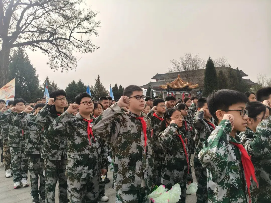“继承先烈遗志,弘扬爱国精神,树立国家安全意识,严守国家秘密,维护国家统一,努力学习,为实现中华民族伟大复兴而奋斗!” 在烈士纪念碑前,全体学生高举右拳,目光坚定,以洪亮有力、铿锵豪迈的声音庄严宣誓。