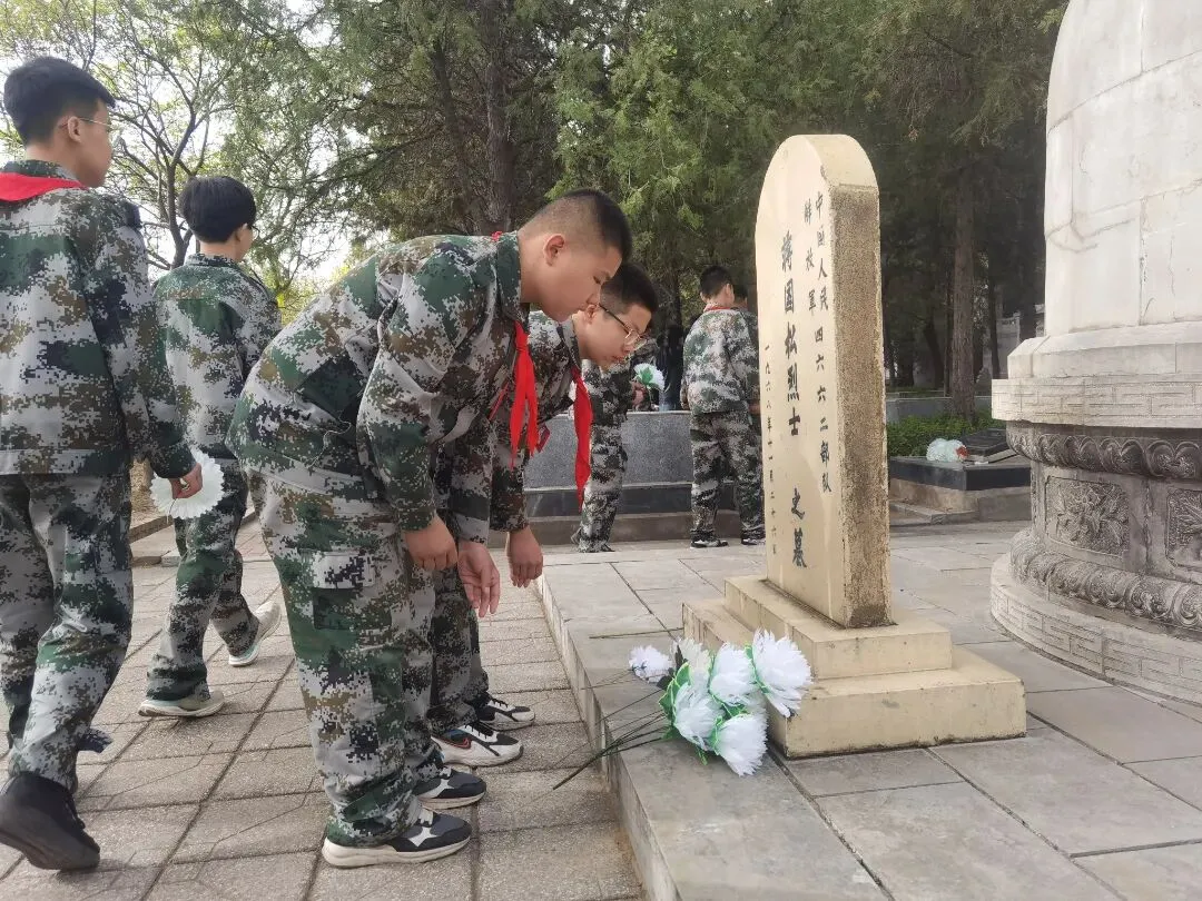 祭扫仪式结束后,同学们怀着无比崇敬的心情,有序前往烈士墓区瞻仰烈士墓。大家手持洁白的小花,缓步走到每一座烈士墓前,小心翼翼地将小白花敬献在墓碑前。