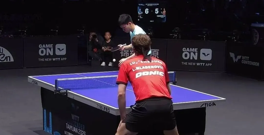 第一局向鹏完全找不到节奏。 他的正手拉球不是下网就是出界,反手相持更是被卢卡盯得死死的。 卢卡根本不跟向鹏拼速度拼力量,他就用防弧胶面轻轻挡、切、挤,把球回到一些很别扭的位置。 向鹏想发力发不上,想控制又控不住。 6-11,第一局很快就丢了。