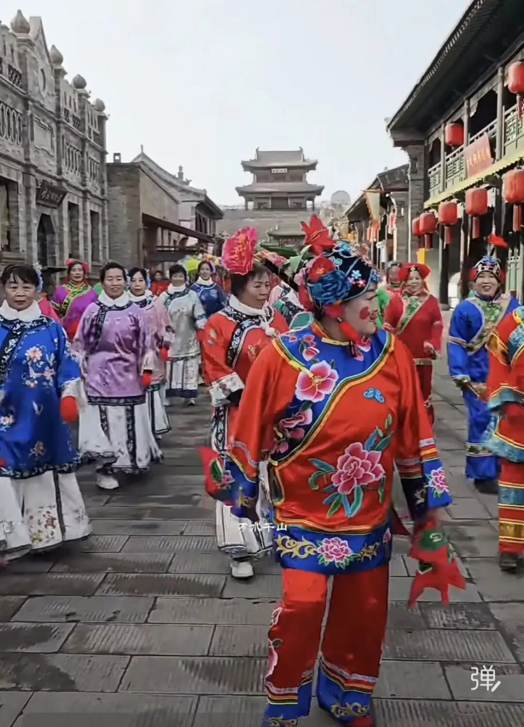 风拂过城垛,带着初春的清冽,也裹着淡淡的年味儿,恍惚间似听见旧时新春的车马声、商贾叫卖声、孩童嬉笑声,交织成三晋大地最动人的人间交响。站在高处望去,满城红灯点缀于青砖灰瓦之间,像是岁月为古城系上的红绸,古朴中透着喜气,沉静里藏着热烈。街巷间,节后的秧歌过街热闹上演,红绸翻飞,彩扇轻舞,锣鼓铿锵,队员们身着艳服,扭出三晋儿女的热情爽朗,引得游人驻足喝彩,欢声笑语在古巷间久久回荡。