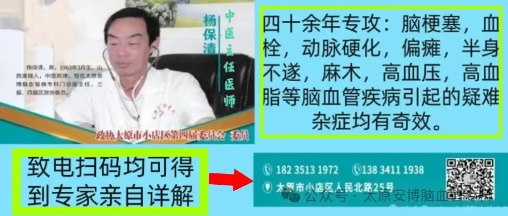 杨保清主任医师(太原安博脑血管专科,40年临床经验) 特别提醒:
