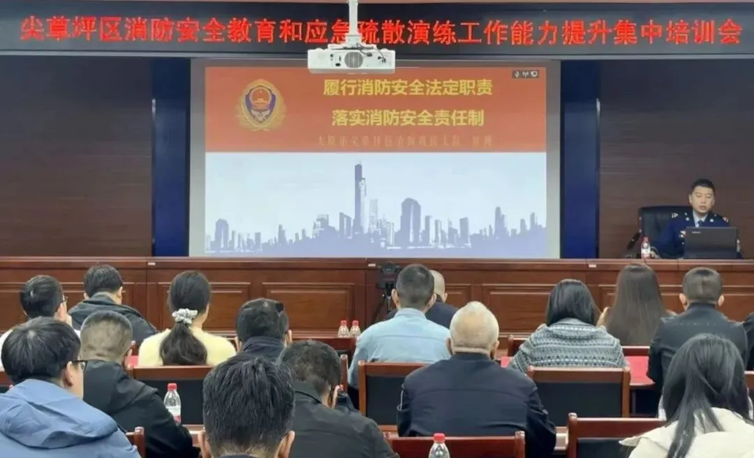 4月7日,太原市消防救援支队尖草坪大队组织开展消防安全教育培训和应急疏散演练。全区各相关部门负责人、安全管理人员、社区(村)工作人员及重点行业从业人员等参与培训,切实以学促行、以练备战,织密织牢全区消防安全防护网。