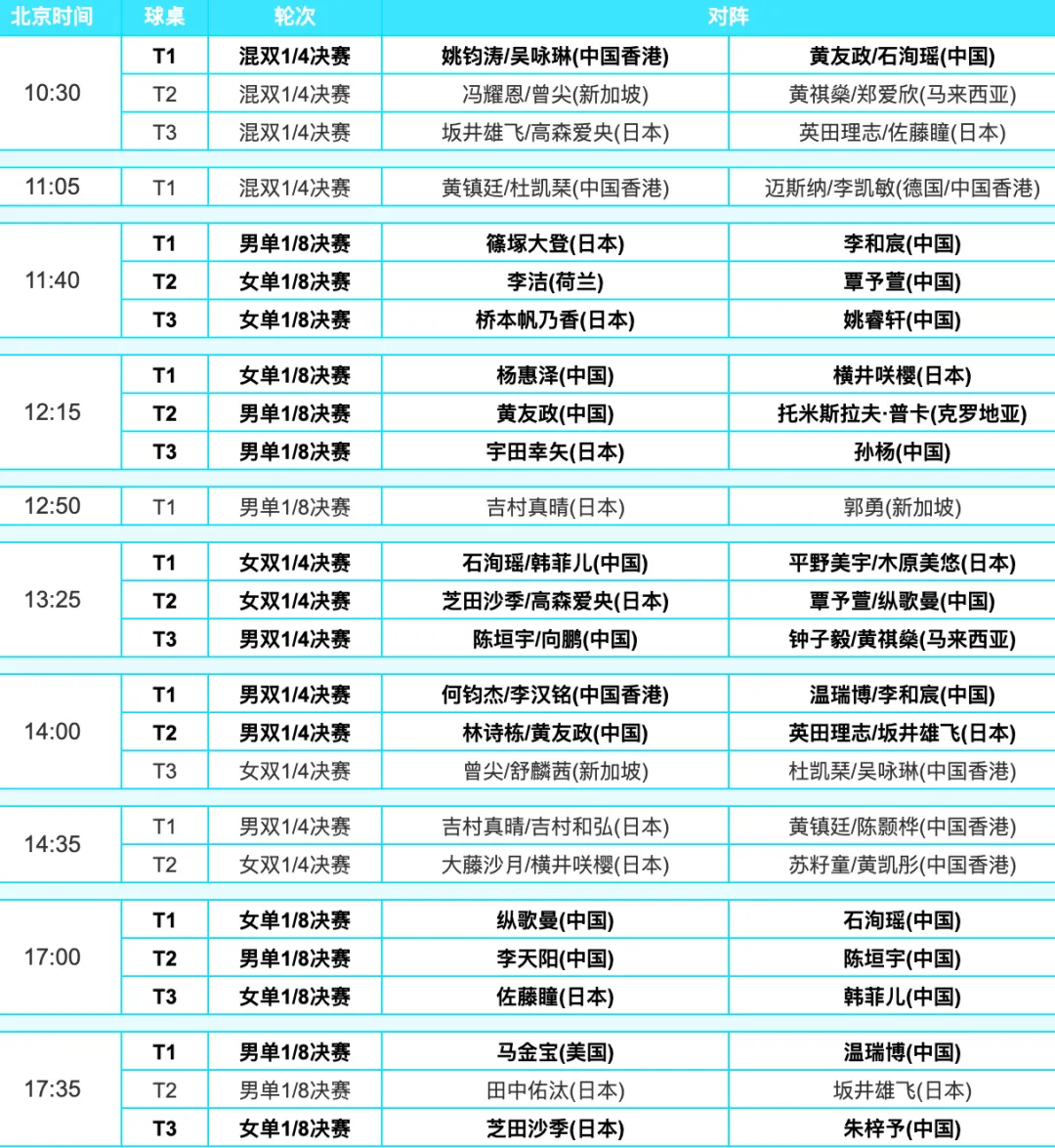 北京时间4月10日,WTT太原常规挑战赛继续进行,今天将继续五个项目的争夺,其中混双要先在上午进行八强赛,随后17:00将产生决赛对阵名单。女双和男双则产生八强,男单和女单今晚将决出1/8决赛对阵名单,对于参赛的国乒选手来说,今天将是关键的一天。傍晚时分,在男单赛场也传来一个爆冷消息,本站比赛的头号种子、刚刚被公布参加伦敦世乒赛团体赛的国乒名将向鹏,被世界排名82位的卢森堡运动员卢卡3-0淘汰出局,遭遇一轮游。向鹏早在青少年时期就崭露头角,在世青赛上大放异彩,进入成人赛场后,却一直不温不火,直到2025年WTT仁川冠军赛相继战胜张禹珍、弗朗斯西卡、雨果和李尚洙等名将,一举夺冠,一时间名声大噪,世界排名也逐渐升至前十,但此后再没有亮眼的成绩。不久前举行的澳门世界杯,世界排名第九的向鹏最终落选,当时男队主帅王皓曾评价他“虽排名靠前,但近期参赛表现未能体现出相应的技战术实力”,不过在3月份,向鹏通过队内选拔赛,还是拿到了直通伦敦奥运的资格,4月8日正式公布名单时,王皓指出向鹏“技术上还有一些要去解决的问题”。本站WTT太原赛,外协会并没有什么高手参加,卢森堡选手卢卡此前很少被球迷关注,赛前人们本以为这场比赛对刚于4月8日度过生日的向鹏而言没什么难度,但最终向鹏还是6-11、5-11和8-11交出答卷,让人大跌眼镜,也不禁为国乒接下来的世乒赛担忧起来。国乒选手黄友政与日本选手吉山僚一的比赛打得也是险象环生,10-12、11-9、11-9、8-11、11-9,这位北京队小伙赢得并不轻松;陈垣宇和黄镇廷也是激战了5局,最终3-2(11-6,12-14,11-6,8-11,11-4)晋级;还有李天阳,他同样是3-2(9-11,8-11,11-9,11-6,11-7)的比分力克日本选手英田理志,对于小将而言表现可圈可点。尽管单局被打11-0,但李和宸还是以3-2(11-6,0-11,9-11,11-6,12-10)险胜日本选手吉村和弘,这比赛很有戏剧性。相比之下,孙杨和温瑞博首轮赢得比较轻松,他们都是以3-0的比分分别战胜姚钧涛(中国香港)和蔡劭恒(新加坡)。女单方面,国乒只有冯怡璇1-3不敌队友姚睿轩而出局,杨惠泽(3-0中国香港林依诺)、韩菲儿(3-0马来西亚郑爱欣)、朱梓予(3-0日本长崎美柚)、覃予萱(3-0新加坡舒麟茜)、纵歌曼(3-1中国香港李凯敏)和石洵瑶(3-0卢森堡倪夏莲)均获得晋级。今天(4月10日)国乒选手将有17场比赛要打,其中9场对阵日本队,2场单打队内战,具体赛程如下:
